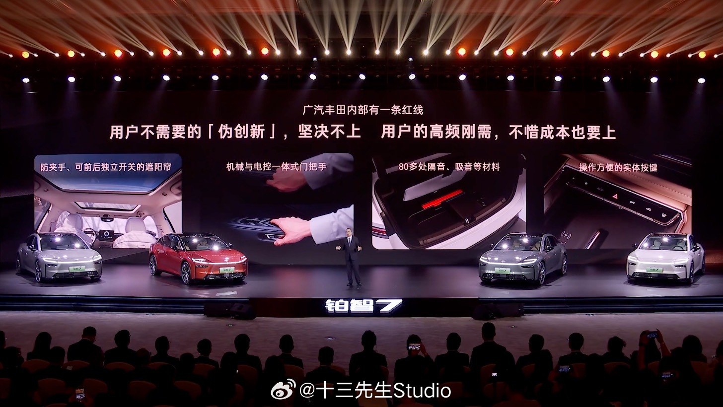 今天丰田铂智7的发布会主题,叫新能源时代的丰田味道铂智系列第二款重磅新车是轿车,这是丰田在新能源时代的旗舰,用料成本并不低。它和过去一些丰田的经典轿车一样,主打的是均衡,像铂智7,不追求参数表上的亮眼数据,但追求用车时的贴心和安心,这就是新能源时代的丰田味道。其实以前很多车有些配置或者设计,他有,但就是做不好,又或者没考虑到,而在丰田上就是比较少出现的,这就是丰田的造车之道,也是为什么广汽丰田会说需要把车造得快的能力,更需要让用户开得久的承诺。 新能源时代的丰田味道丰田铂智7全面开启预售