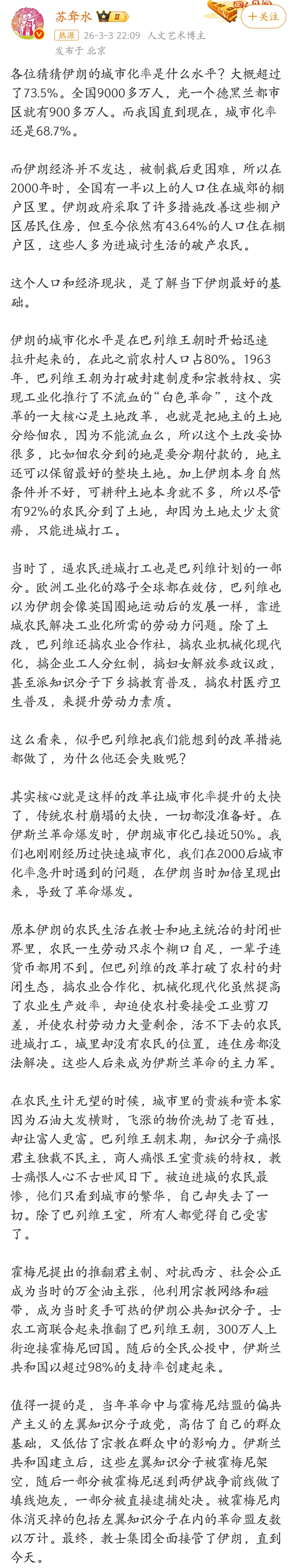 伊朗的教训告诉我们,城市化率高未必是好事。