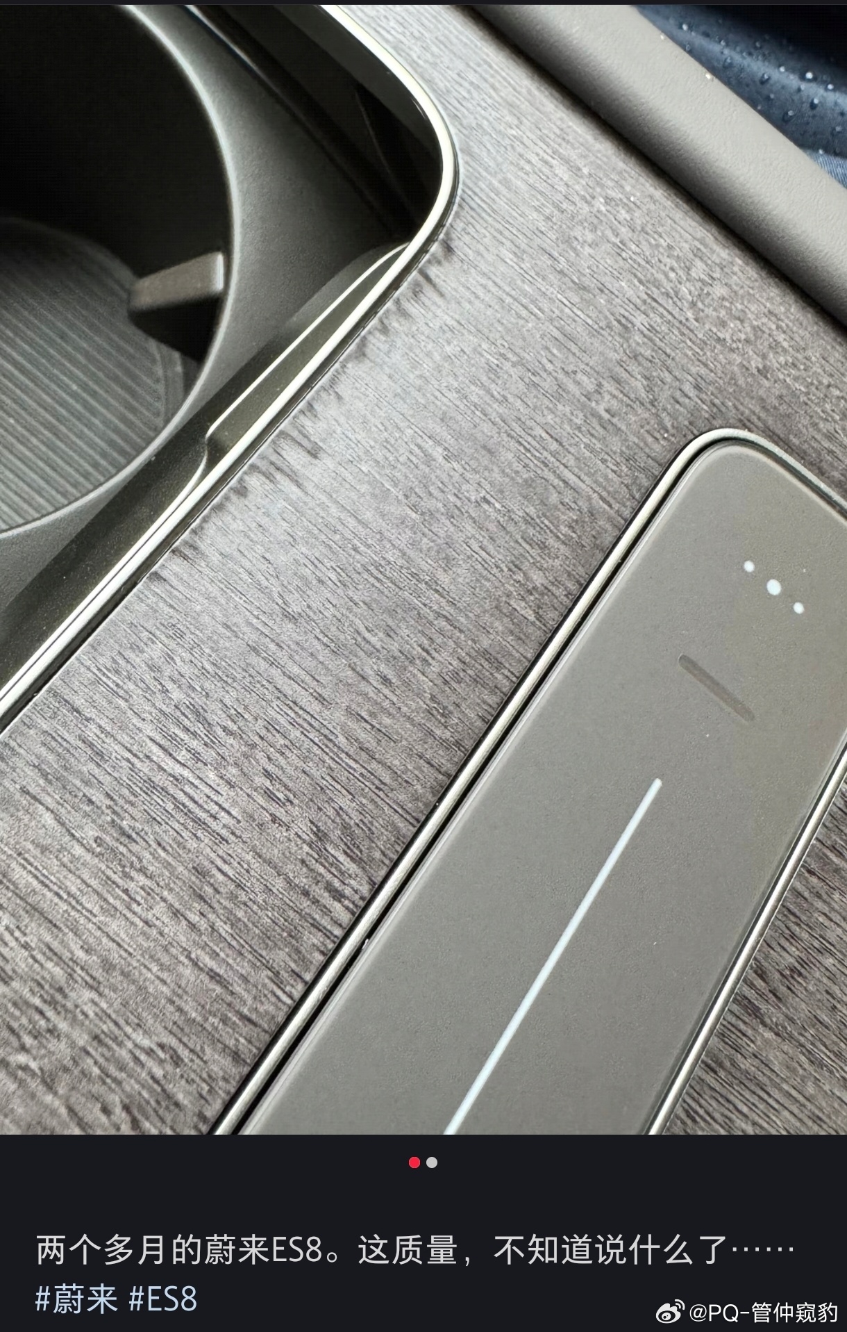 有网友抱怨蔚来全新ES8Console木纹饰板开裂仔细观察会发现【疑似边缘进水