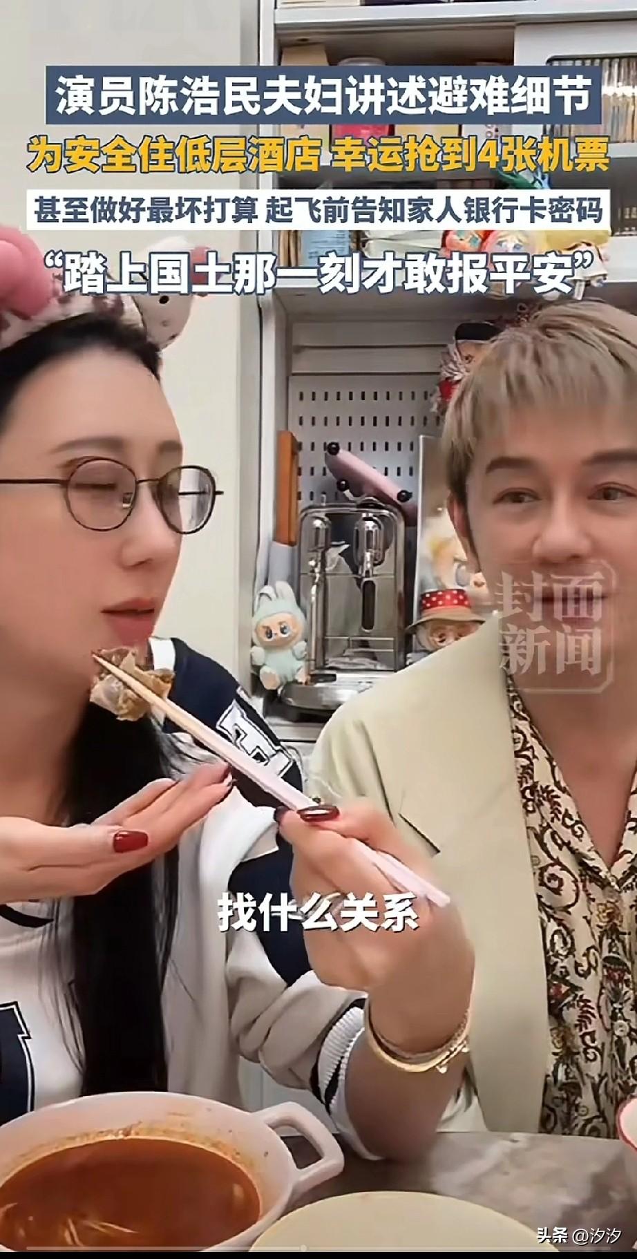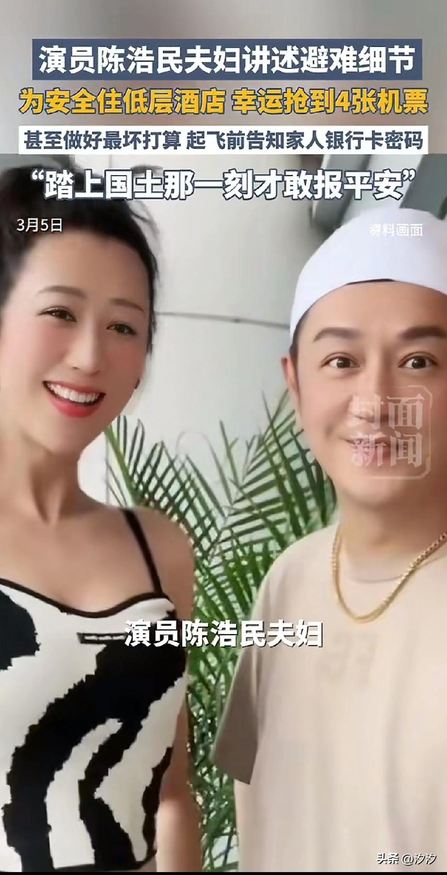 演员陈浩民夫妇, 困在迪拜被曝光了, 如今他们终于回国了, 当时在迪拜不敢住高层酒店, 怕被导弹击中,不好逃生, 也没有动用什么关系, 全靠媳妇儿奖励啥抢的飞机, 从迪拜飞往香港只要1万块钱, 并没有,网上传的几十万一张, 他的媳妇儿先给自己的父母抢了两张, 最后又给他两个人抢了两张, 出发前也没有发视频报平安, 只是把银行卡密码都告诉了自己的亲, 做好了万一被导弹击中, 亲人也能有自己的银行卡密码, 直到飞到中国领空, 他们才敢给家人报平安, 一次美伊冲突, 炸出了这么多明星也把春节迪拜有当成了首选,过年不好好在国内过年, 非要出国旅游, 搞这一出差点命没了, 果然伊朗不坑穷人! 大家还知道哪些明星在迪拜?