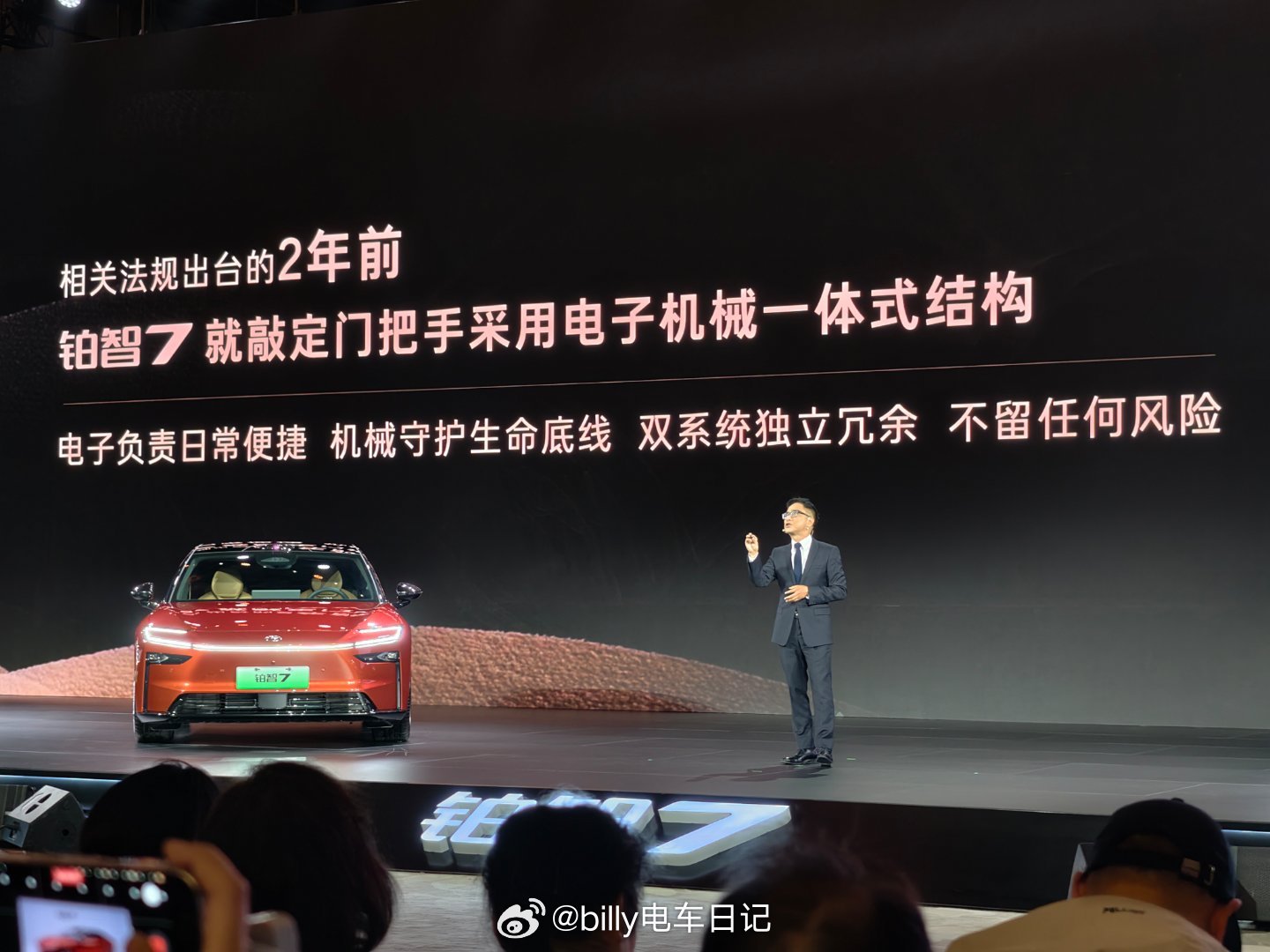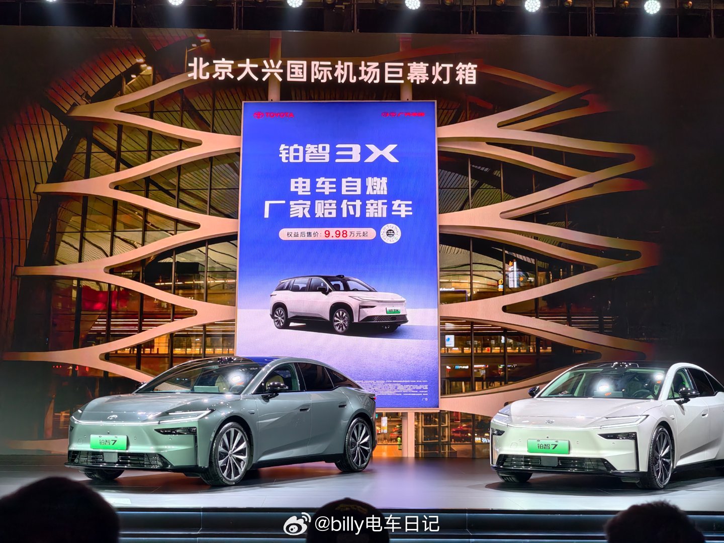今天发布会上反复提及安全、冗余,这也和广汽丰田一贯的坚持相呼应,比如铂智7采用电子和机械一体的门把手,在法规出台前两年就已经在做了,包括北京大兴机场广汽丰田的巨幅灯箱写着:电车自燃,厂家赔新车。说明广汽丰田对自己的产品足够自信,才敢在这么大人流的区域长期刊登!