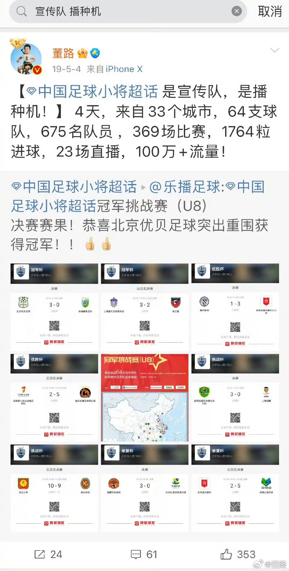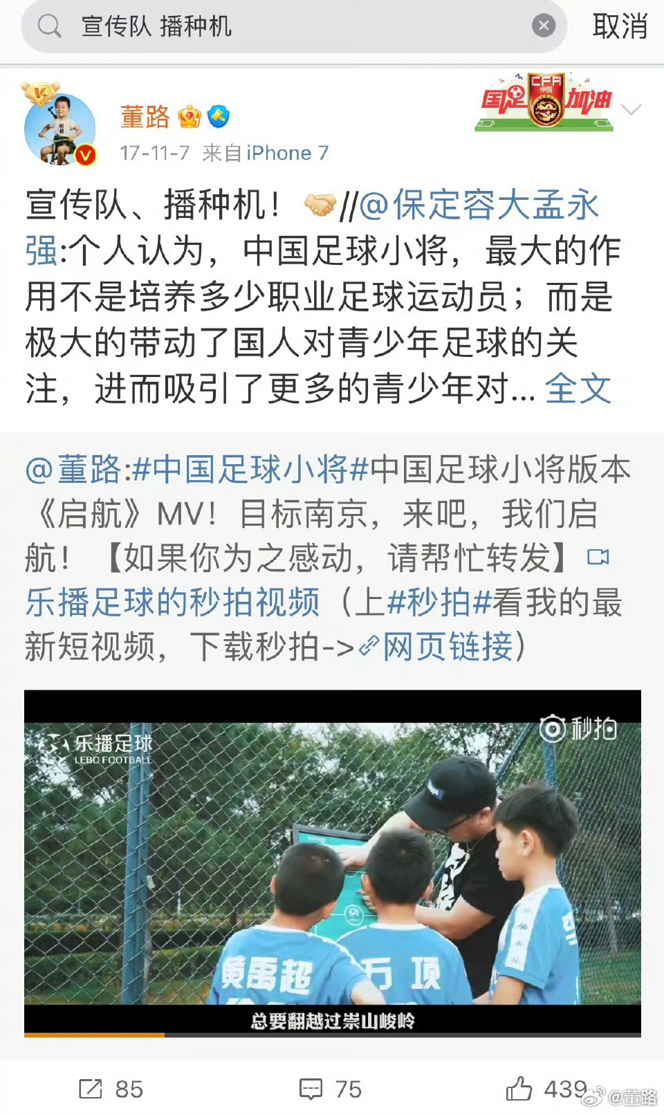 【践行】2017年11月7日,第一次在微博表达了中国足球小将 努力成为中国青训的“宣传队、播种机”,此后,又多次提及。9年来,我们所做的一切,都在践行着当初的誓言!