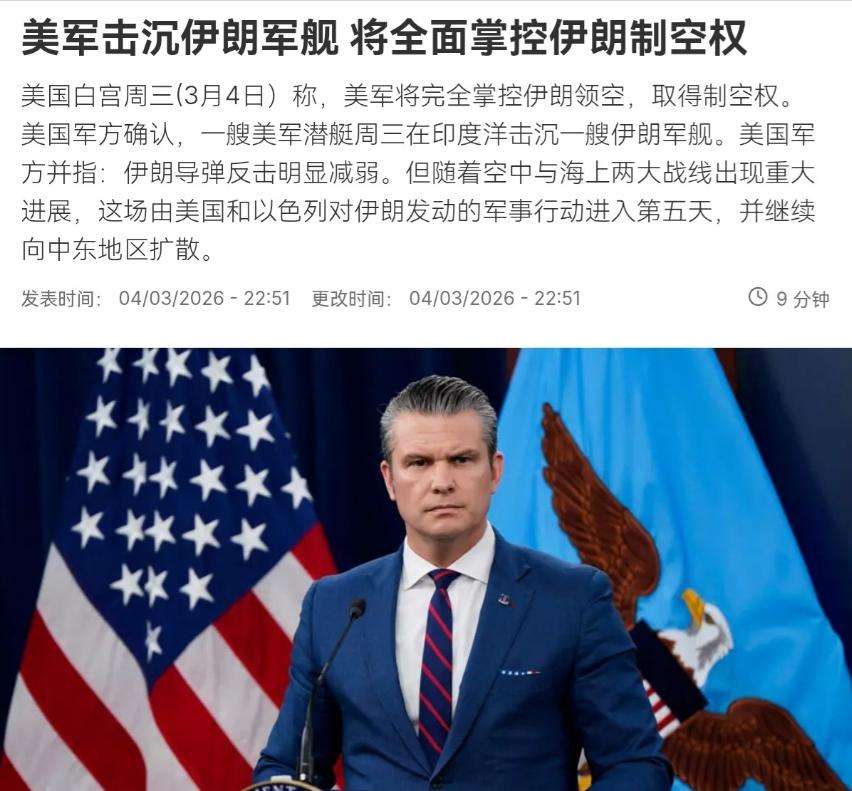 伊朗的情况有点不妙!伊朗反击发射的导弹数量明显下降了!3月5日,根据法新社报道,美军参谋长联席会议主席凯恩表示,根据美方数据,与战争首日相比,伊朗战术弹道导弹的发射数量已经减少86%,仅在最近24小时内就再下降 23%。与此同时,美国军方预计将在数小时内取得对伊朗领空的全面制空权,而伊朗的海军也遭遇到重创。 很显然,从这些已经发生的情况来看,局势对伊朗有点不妙。 可能有人会问,伊朗为啥不继续多发射导弹反击?不是它不想,是真的没那么多能用的了。 据多方统计,伊朗现在能真正用于实战的导弹,大概有1700到2500枚,其中能威胁到美国中东基地和以色列本土的弹道导弹,也就1000到1200枚。 之前打仗的时候,伊朗为了压制对方的防御系统,采取了饱和式打击,短短6天就发射了上千枚导弹和无人机,消耗得特别快。 而且伊朗还得留20%到30%的导弹当底牌,防止自己最虚弱的时候被对手一击致命,所以实际能用来持续反击的导弹,根本不够用多久。 更麻烦的是,美国和以色列早就盯上了伊朗的导弹生产线,已经发动了多轮精准空袭,炸掉了伊朗不少导弹仓库、生产工厂和发射设施,直接打断了不少导弹的生产流程。 加上长期的国际制裁,伊朗没法进口制造导弹需要的高精度机床、高端电子元器件这些关键零件,就算想边打边造,速度也慢得可怜,根本赶不上消耗的速度。 虽然伊朗说有部分生产线转移到了深山里,还储备了一些原材料,但也只能维持最低限度的生产,根本改变不了导弹越打越少的局面。 再说说美国要控制伊朗领空这件事,这可不是空话,现在美国在中东部署了两个航母打击群,还在以色列等地区放了上百架先进战机,比如F-22、F-35这些,还有不少预警机、加油机帮忙。 而伊朗的战机大多是几十年前从其他国家买的老款,和美国的战机差了两代,根本没有还手之力,之前就有伊朗战机被美国F-35击落的情况。 而且以色列之前也已经袭击了伊朗数十处防空系统,包括伊朗国产的巴瓦尔-373防空系统,虽然这款系统性能还不错,但被多次打击后,防御能力大幅下降,根本挡不住美国的大规模空袭,所以美国才敢说能在几小时内取得全面制空权。 伊朗的海军就更惨了,已经遭到了重创,3月4号的时候,伊朗一艘名叫 “迪纳” 号的护卫舰,在斯里兰卡附近的海域被美军潜艇用鱼雷击沉了,当时船上大概有180人,现在还有上百人失踪、受伤,这艘船还是伊朗海军南部舰队的主力舰之一。 除此之外,美军已经打击或击沉了伊朗20多艘舰船,包括伊朗引以为傲的海上基地舰,还有用集装箱船改装的 “航母”,也在空袭中严重受损。 现在伊朗的水面舰艇几乎被打废,剩下的几艘潜艇也不敢随便露头,一出来就会被美军发现打击,等于伊朗彻底失去了海上反击的能力。 现在的伊朗,等于是腹背受敌,导弹越打越少,造又造不出来;防空系统被破坏,领空很快就要被美国控制,到时候美国战机可以随便轰炸伊朗的军事目标和重要设施;海军被打废,不仅没法在海上支援,连自己的海上能源运输路线都没法保护。 而且美国还打算逐步深入伊朗境内,扩大军事行动范围,伊朗的处境只会越来越难。 可能有人会觉得,伊朗还有还手的机会,但从目前的情况来看,机会真的不多,导弹数量持续下降,没有足够的武器反击;制空权快要失守,只能被动挨打;海军重创,失去了海上屏障,这三个问题凑到一起,局势对伊朗来说,真的是越来越不妙。 后续如果冲突继续,伊朗的导弹库存只会越来越少,防御能力也会进一步下降,想要扭转局势,难度非常大。 毕竟美国和以色列的军事力量,比伊朗强太多,加上伊朗被制裁多年,军事装备和生产能力都受到很大限制,现在的处境,确实不容乐观。
