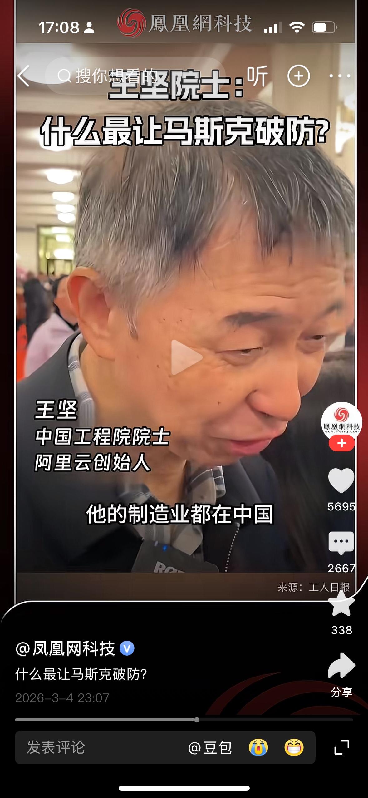 我们的工程院院士发表的理论真的让人笑死了,这个工程院院士王坚说什么?他说:马斯克没有什么了不起,马斯克所有的技术需要制造原料都在中国制造,比如说变压器等配件都在中国制造。我觉得你这个作为工程院院士,你为什么不能是在星舰技术上超越马斯克呢?为什么你工程院院士是只配当马斯克的配角生产配角料呢?这个工程院是沾沾是自自喜的是马斯克需要的电源电线是中国生产的[流泪][流泪][流泪] ,这位工程院院士,你代表的是中国最高的技术水平,你只配帮人家生产配角料吗?