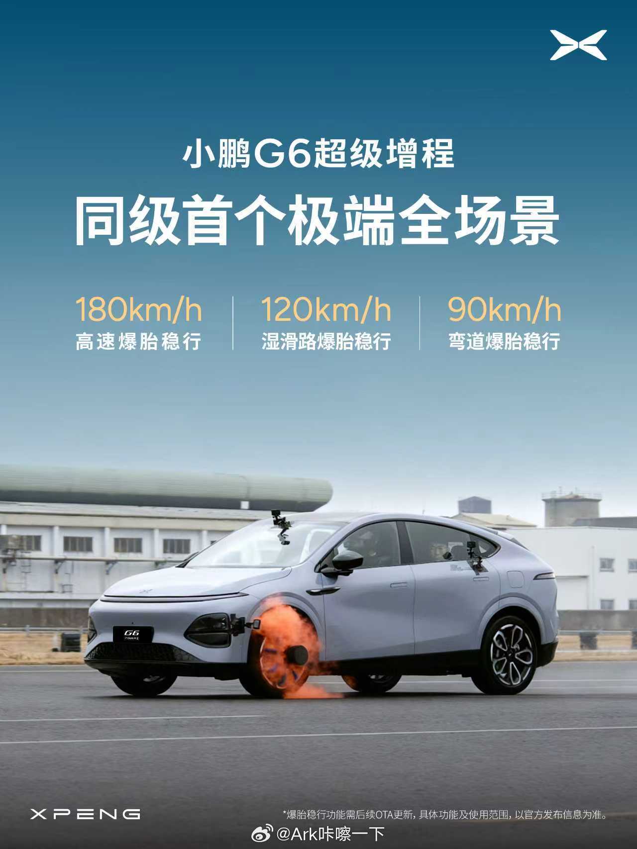 小鹏G6首发时速180km爆胎不失控小鹏G6超级增程三大极端安全场景爆胎测试:180km/h 高速爆胎稳行,120km/h 湿滑路面爆胎稳行,90km/h 弯道爆胎稳行,三项测试满分通过,车辆平稳减速与安全停靠。不仅是极端场景,根据小鹏公布AEB+AES数据显示,2025年全年累计避免 376,504 次潜在碰撞,其中,小鹏G6累计避免了超 90,000 次潜在碰撞风险。从极端测试到真实路况,安全感十分到位,为年轻家庭用户提供了可靠的安全保障。小鹏G6超级增程六项全能一步到位