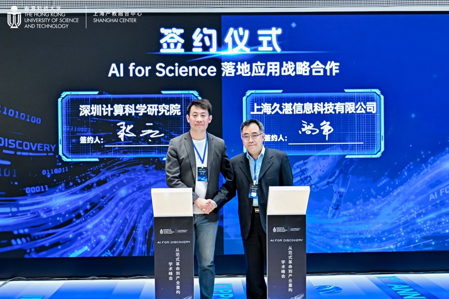 “人工智能”正从技术名词演变为驱动基础科研与产业升级的“新质生产力”。昨天港科大上海中心北杨基地举办的“AI FOR DISCOVERY:从范式革命到产业重构”学术峰会上传来消息,香港科技大学将在沪推进AI for Science应用落地。 深圳计算科学研究院与上海久湛信息科技有限公司在会上共同签署战略合作,未来将依托崖山大数据底座,联合推进人工智能与科学计算的融合创新。