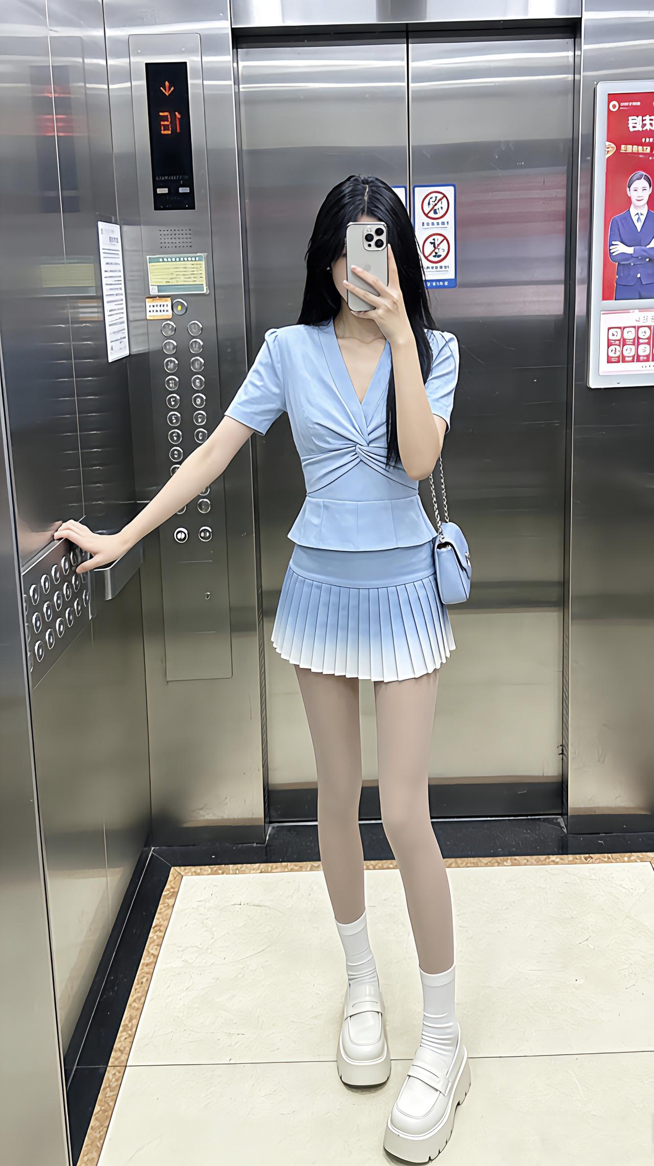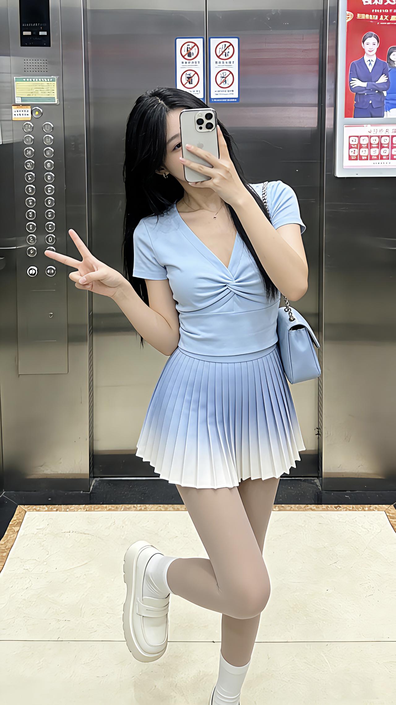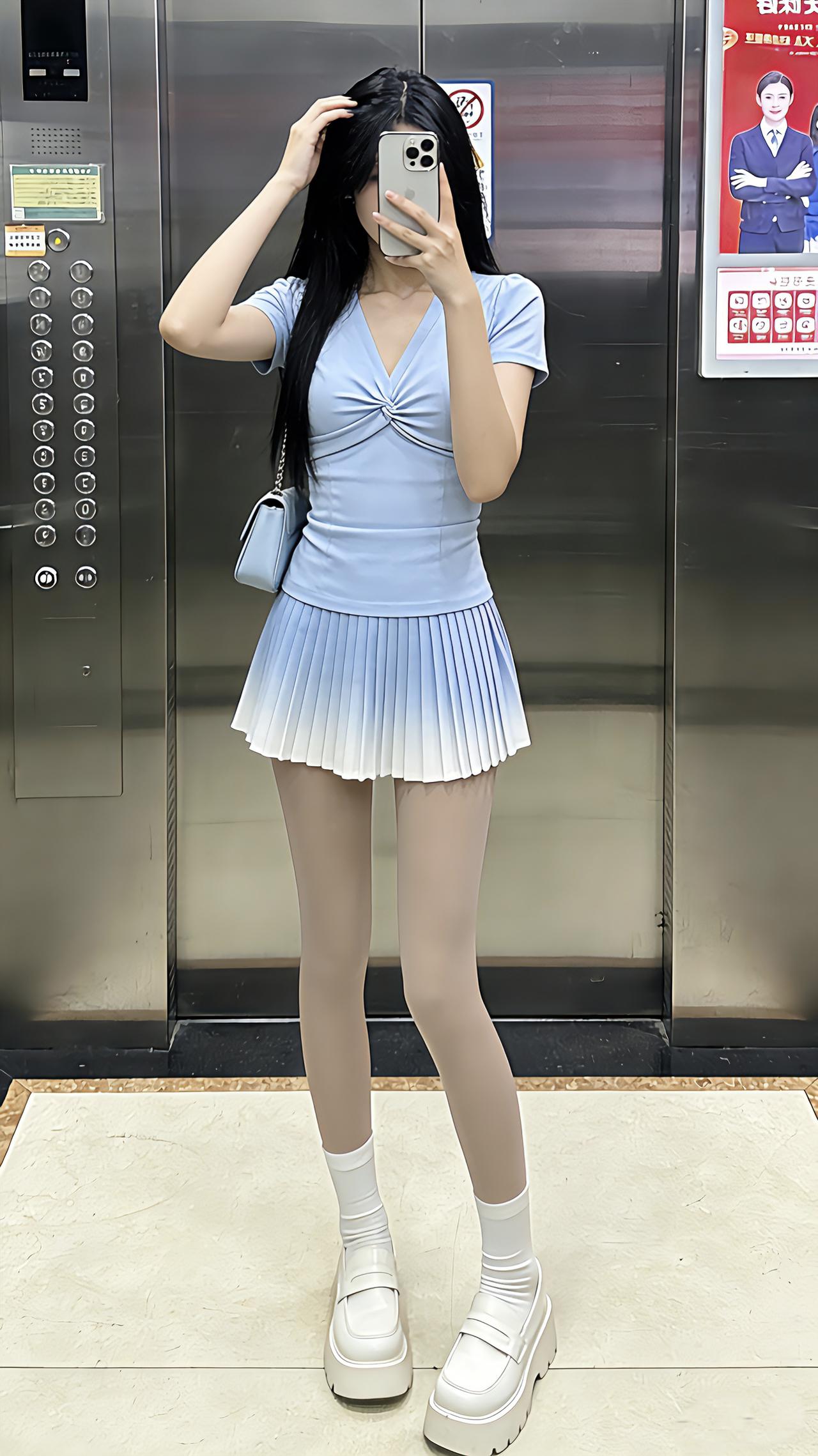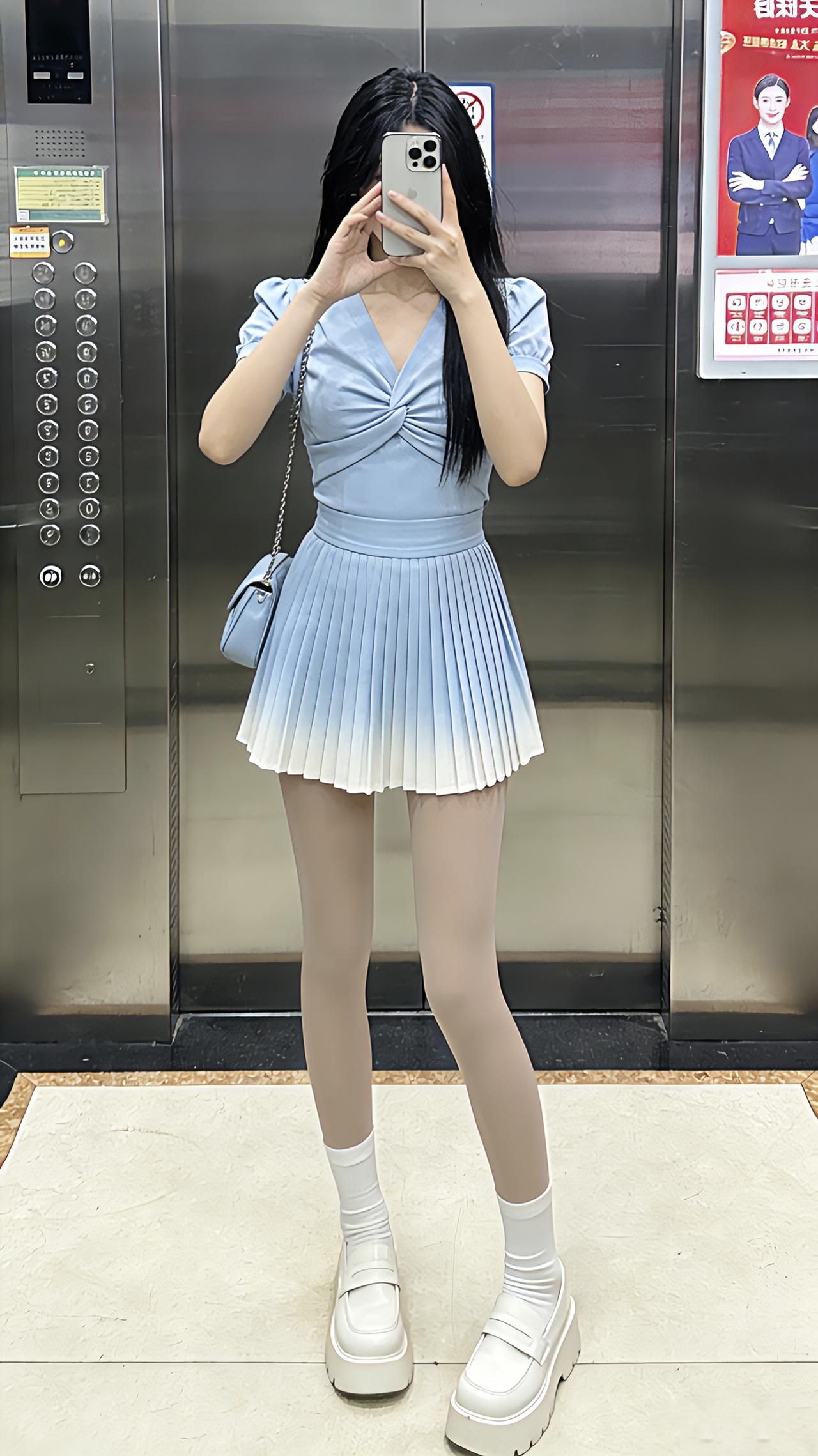 这种清透甜妹风你们爱了吗?电梯间里,浅蓝渐变裙像把蓝天揉成了甜,扭结上衣一收腰又娇俏得刚好~同色系小包挂在肩侧,清透得像刚拆的海盐味软糖!早春辣妹我先当了 早春穿搭 甜妹 甜美温柔风穿搭