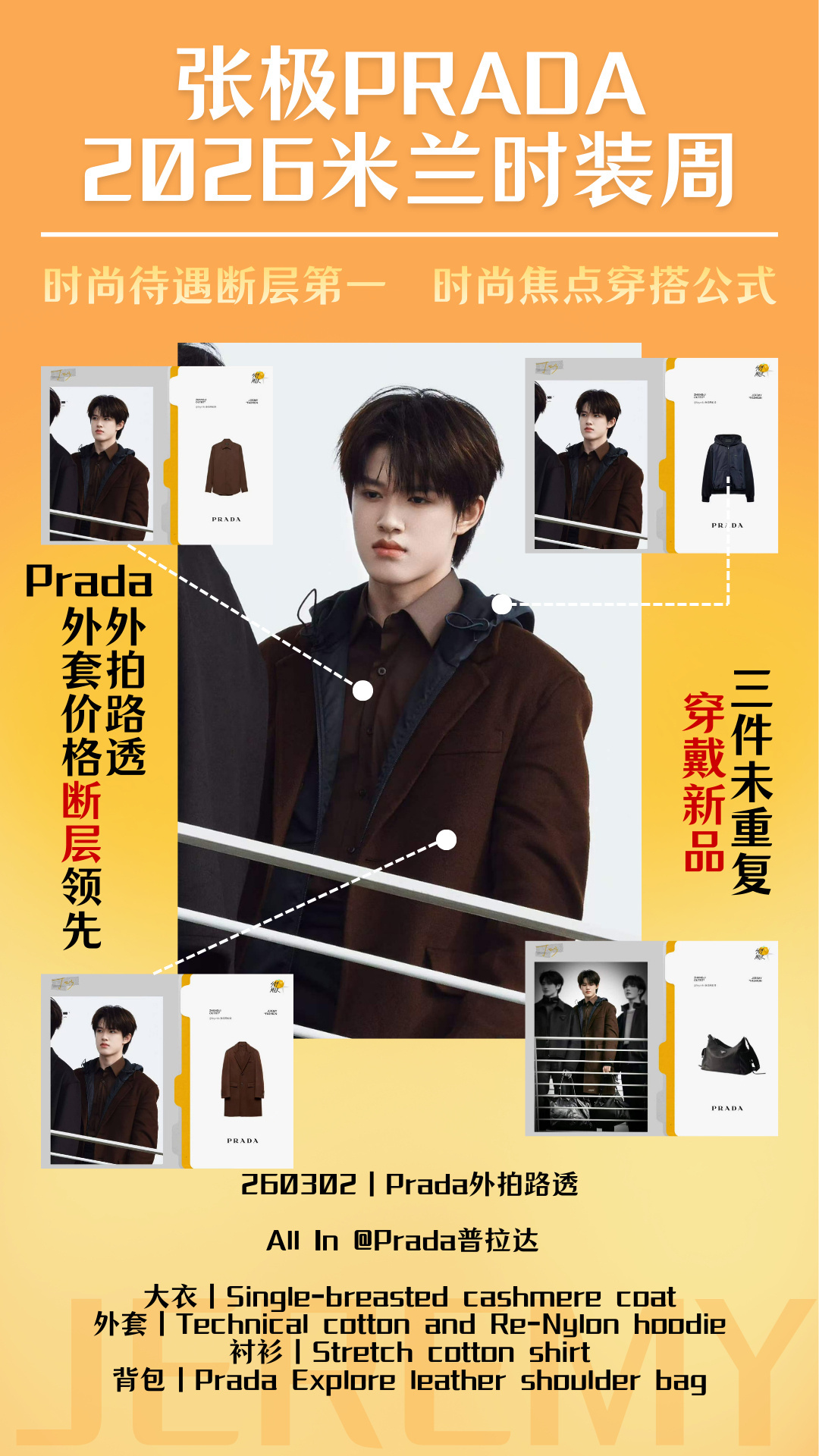 本次Prada米兰时装周,张极从预热到秀场最多单品、最高总价、闭秀压轴、高定珠宝、官方大片。品牌方主动投喂、资源断层领先、待遇一骑绝尘,内场镜头更是拿下团内最高规格待遇,是Prada对其时尚表现力、品牌契合度的最好礼遇和盖章。张极三奢一实至名归🐮张极出席prada米兰时装秀