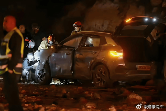 画面显示,车头面目全非,挡风玻璃全碎,安全气囊炸开,车身扭曲变形。正常人都觉得,里面的人凶多吉少。可结果偏偏是——车门能正常打开,乘员舱没塌,最关键的是,电池包没起火、没爆燃。车内人员虽不同程度受伤,但全逃出来了。