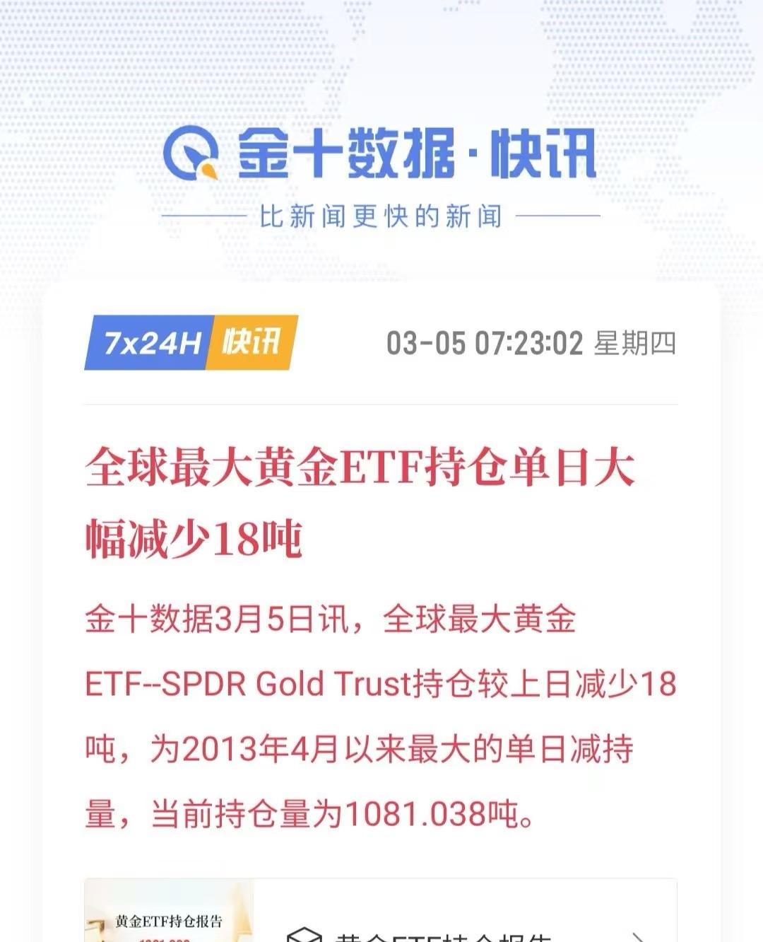 全球最大的黄金ETF,昨天一下少了18吨持仓,这可不是个小数目。要是明后天还接着减,而金价没怎么动,那可得多留个心眼了。毕竟ETF的动作,往往能看出点趋势来,别大意~