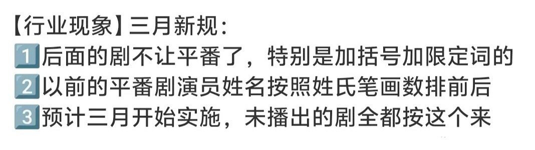 番位必须由广电来彻底整治。最爱私番的就是那些有点流量但没有实绩的生。扛剧要靠花来看扛,番位却仗着是生各种撕。平番确实没有存在必要,一番二番三番都应该清楚明白。曝制作公司苦番位久矣