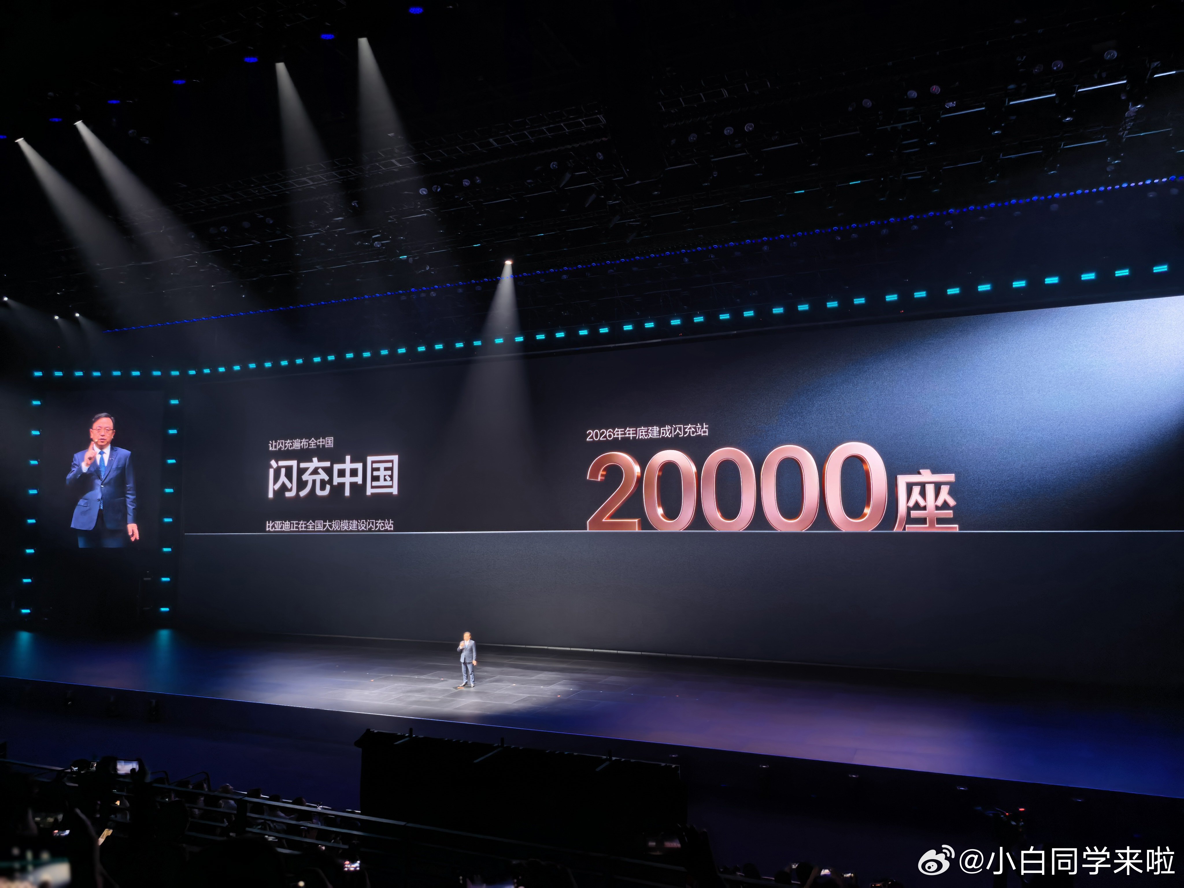 比亚迪闪充中国计划,年底建成 20000 座,其中 18000 座是闪充站中站。