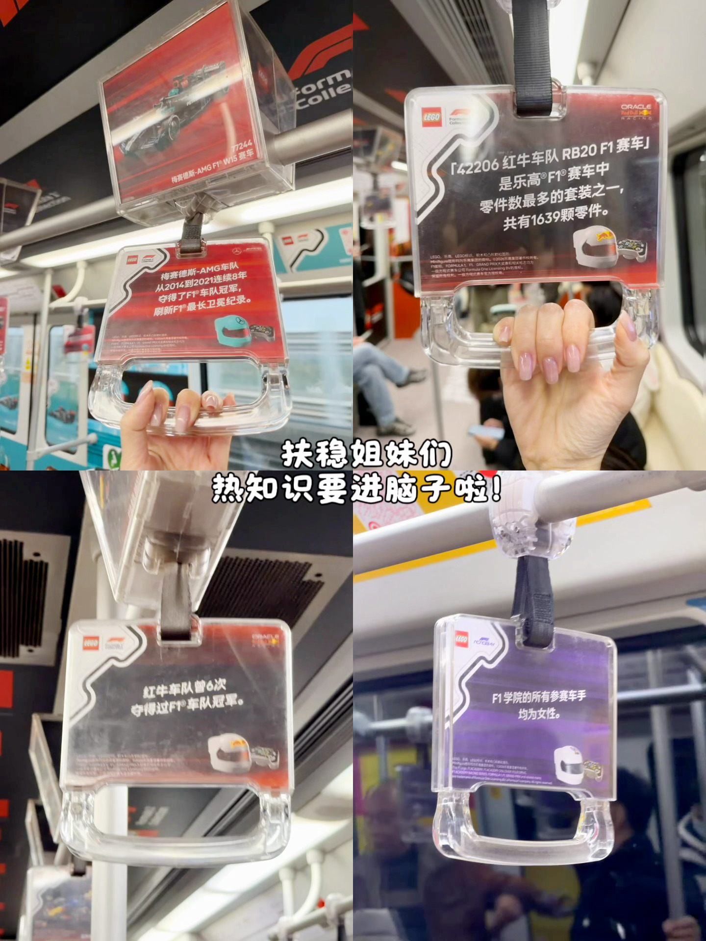 💡 彩蛋加餐:扶手上还有F1热知识问答(比如:F1学院车手全都是女性吗?),一边坐地铁一边涨知识