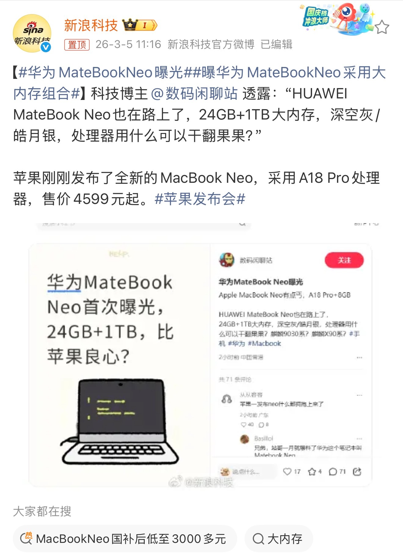 要知道苹果Mac Book Neo才刚刚推出,如果价格一样,大家该怎么选?