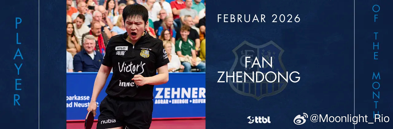 【德甲官网】“TTBL二月最佳球员”:樊振东(1.FC萨尔布吕肯-TT)在社