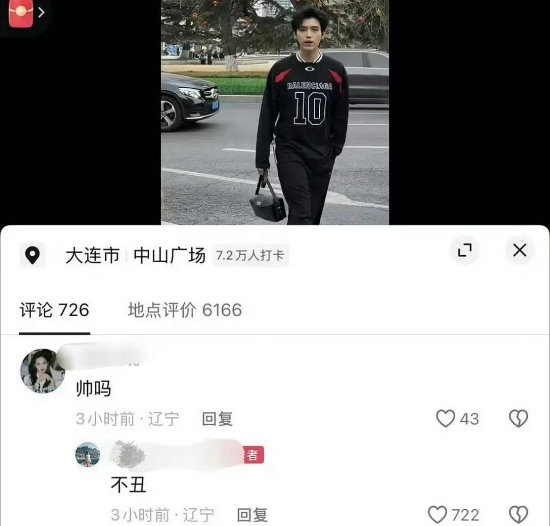 有博主在大连偶遇正在拍摄的陈飞宇并发了抖,评论区的人问他“帅吗”,博主回答“不丑”,这?