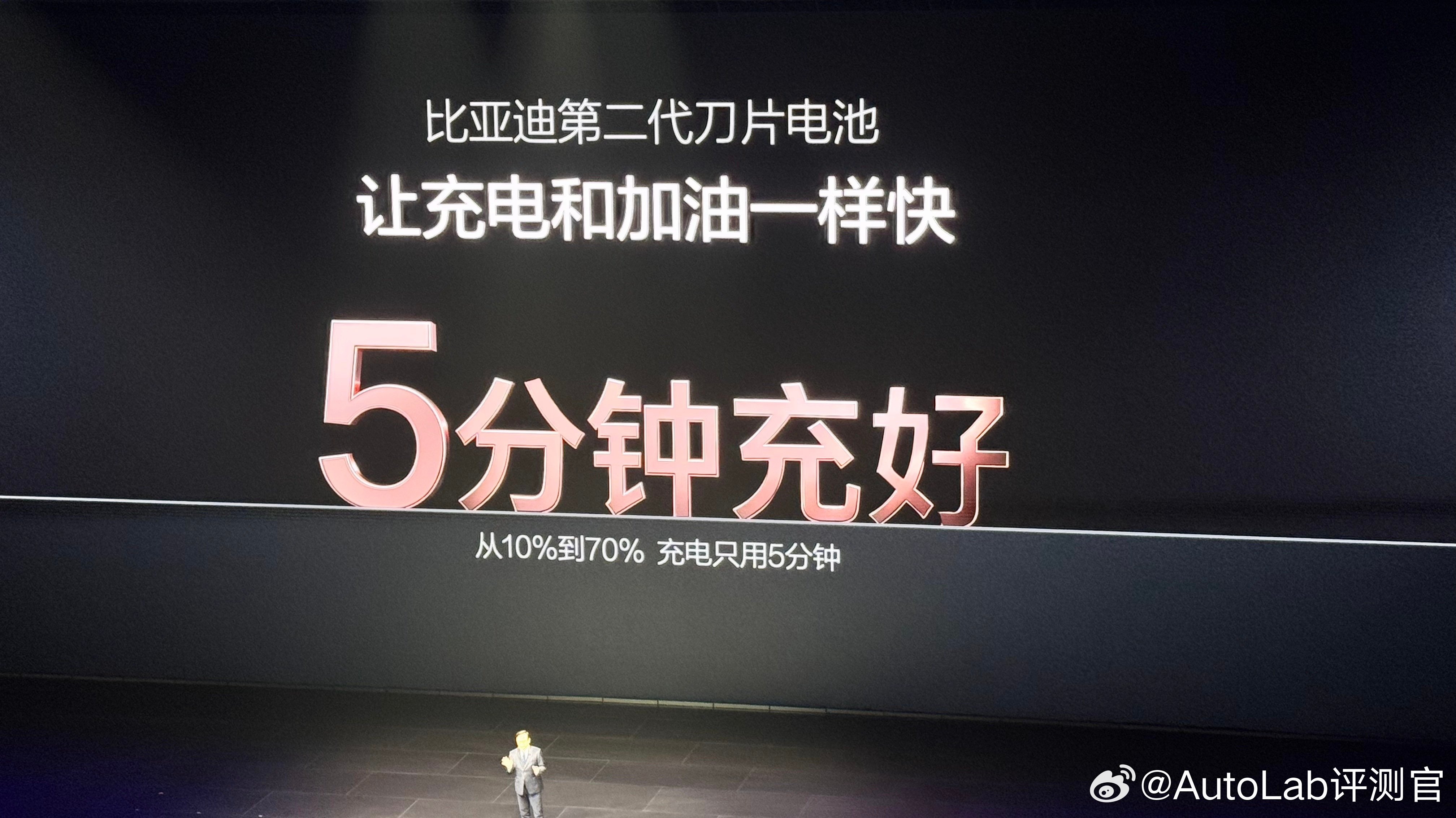 比亚迪的二代刀片电池来了 充电速度提升巨大10%-70% 5分钟充好10%-97% 9分钟充饱