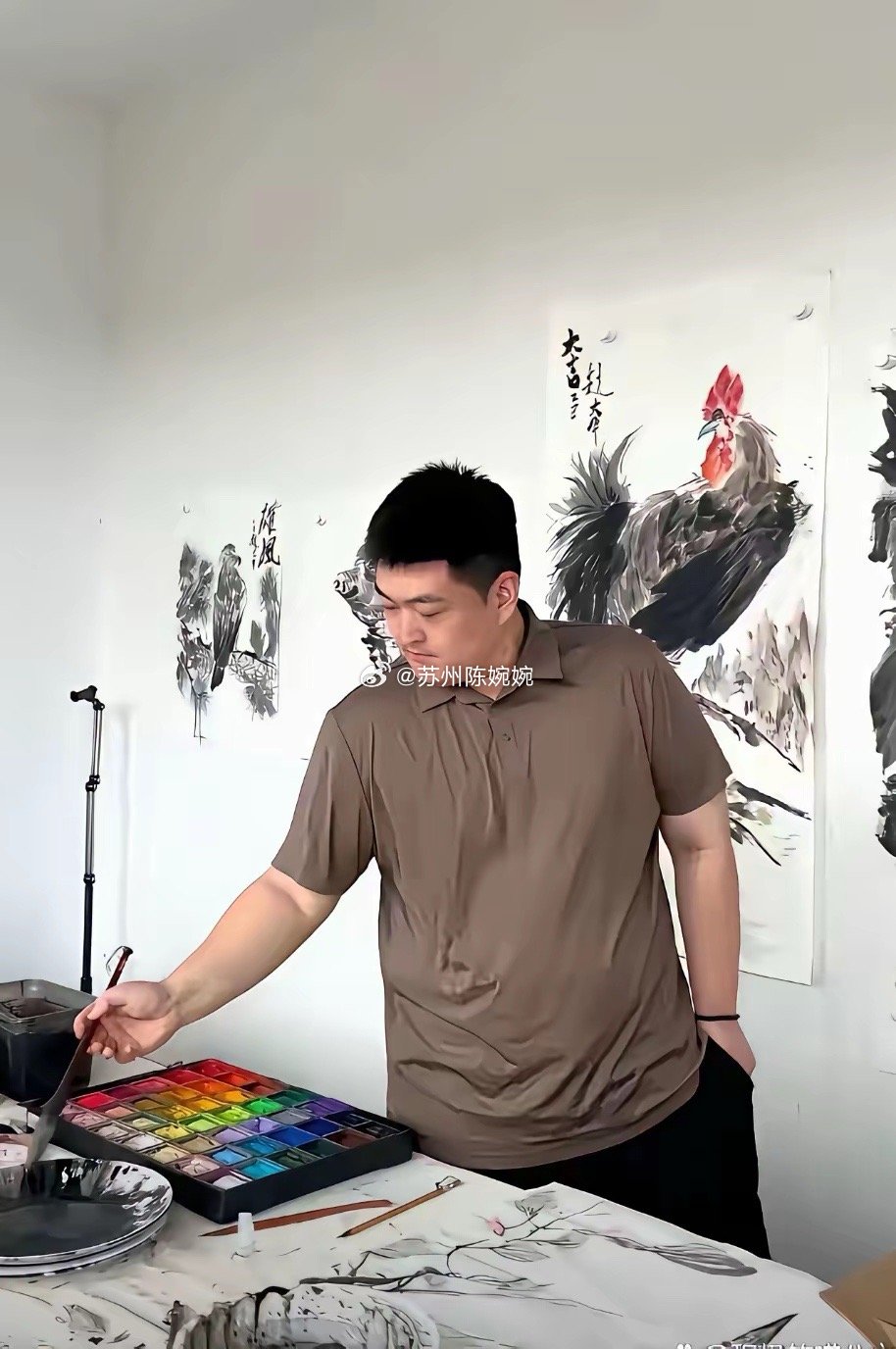 赵本山儿子赵大牛,一手插兜,单手画国画,这动作真帅,赵本山的这两个孩子真的没的说,算是二代里面的一股清流了吧