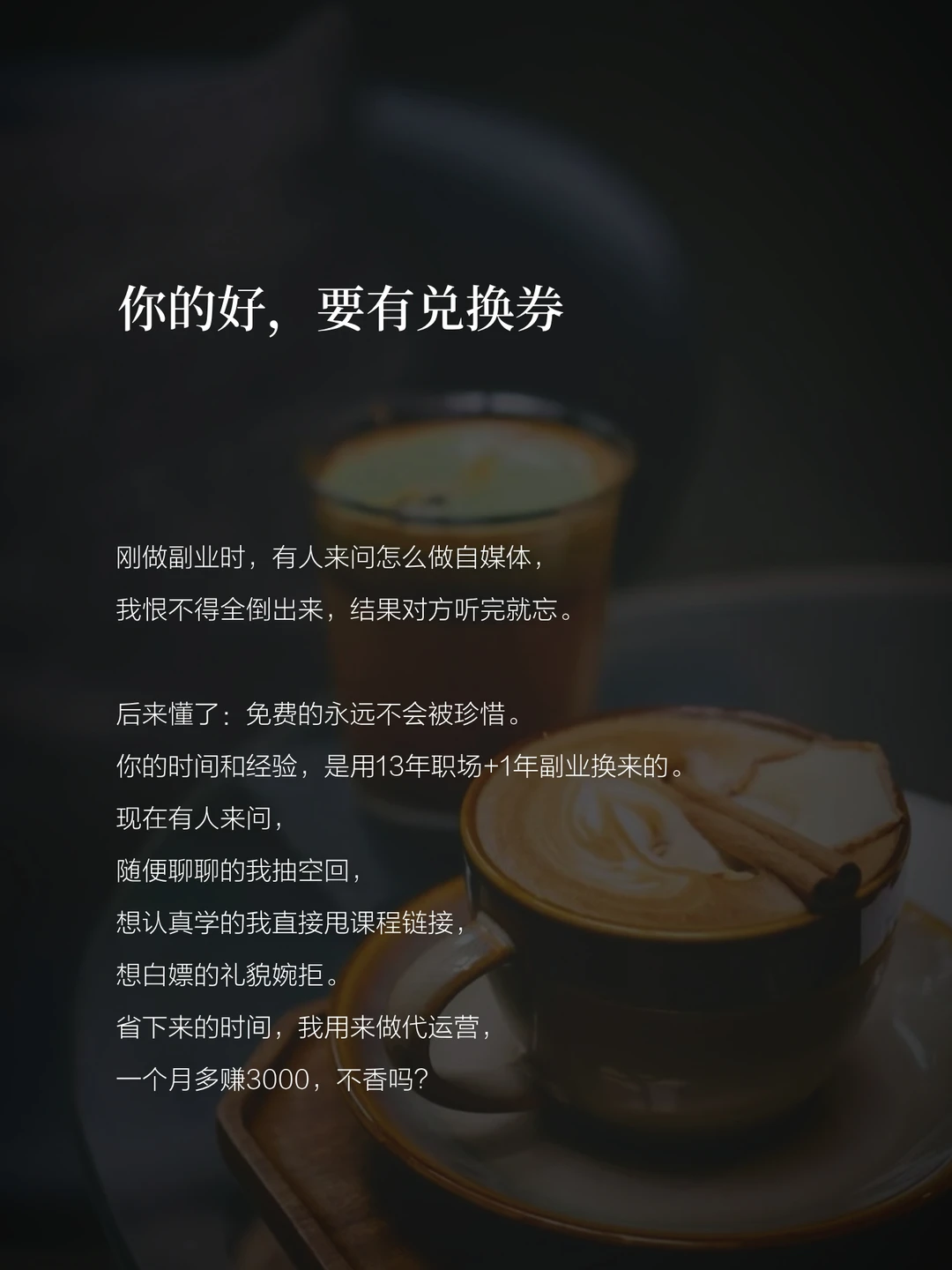你的时间和经验,是用13年职场+1年副业换来的。