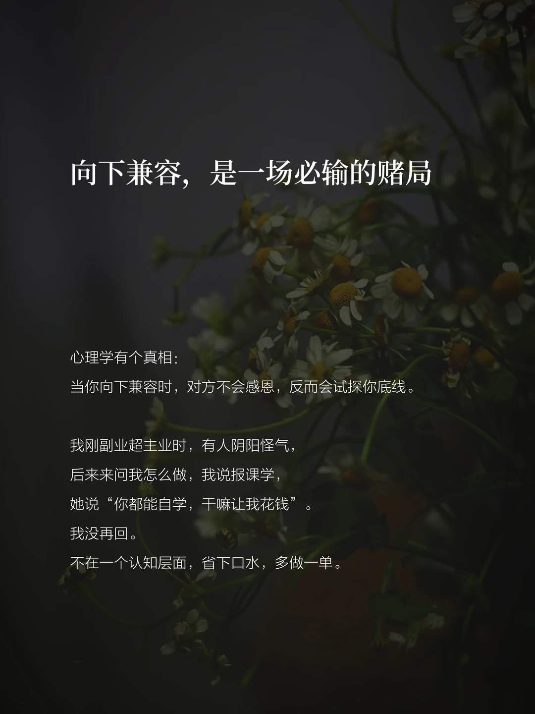 当你向下兼容时,对方不会感恩反而会试探你底线。