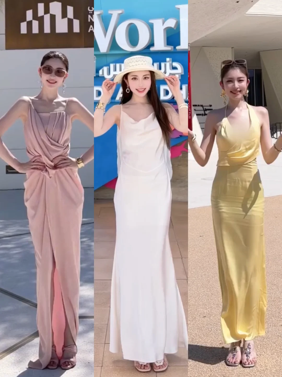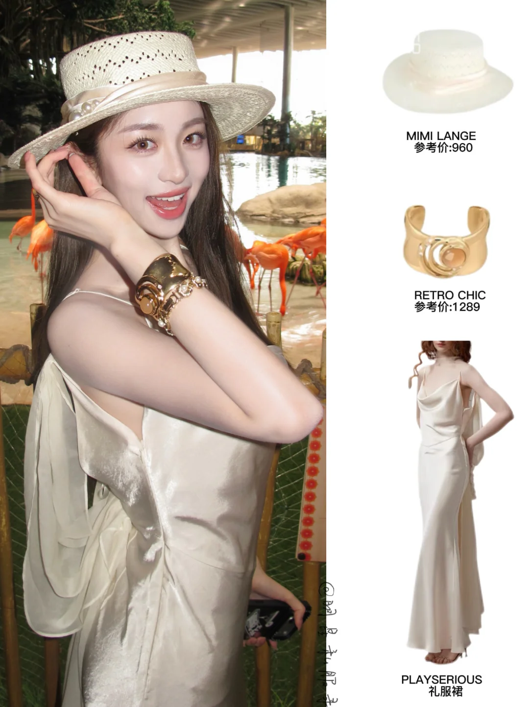 👗LOOK 2|白色吊带礼服裙+草帽