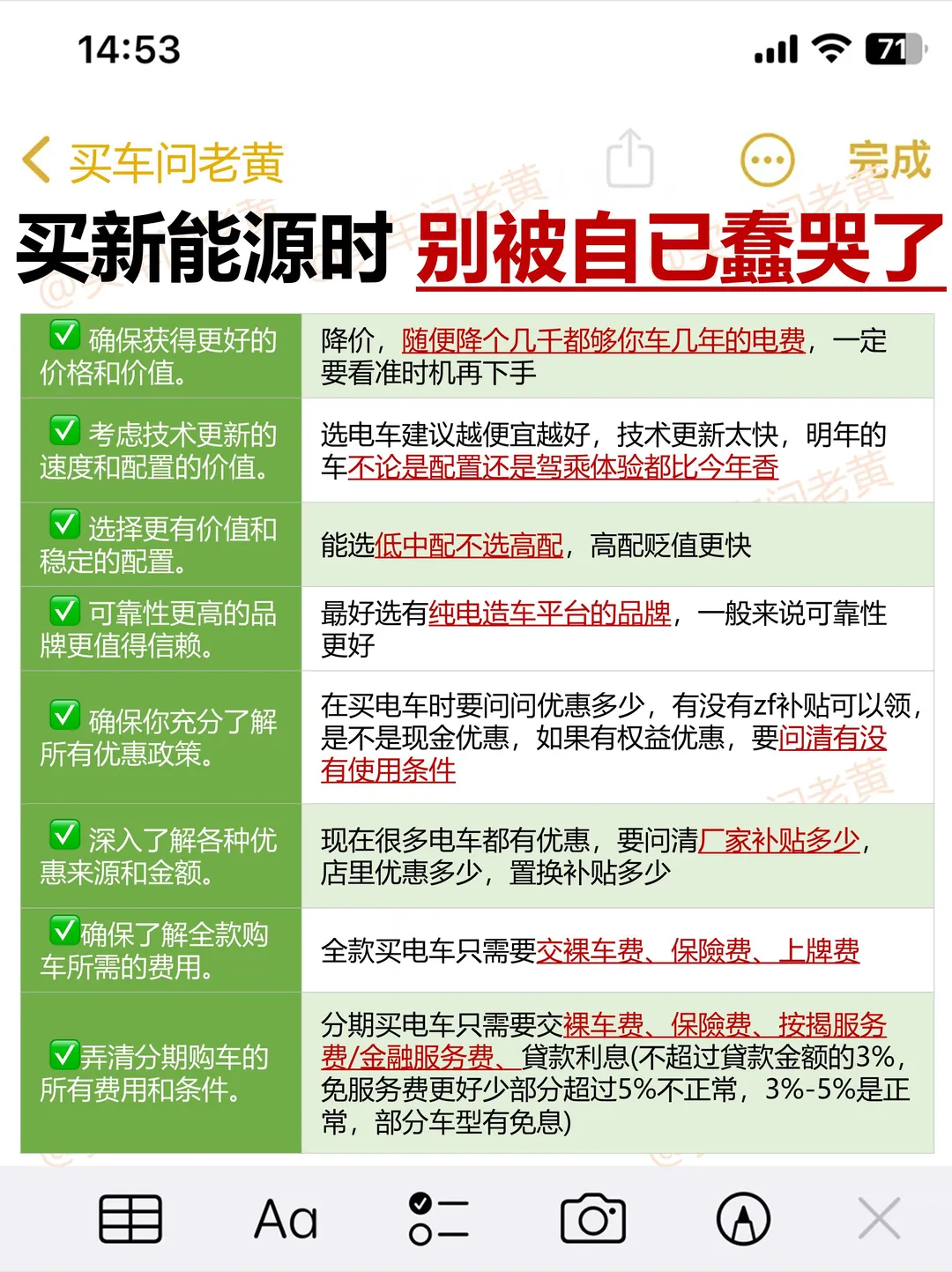 别傻乎乎只问落地价!掏出手机打开备忘录:"姐,麻烦把每一项费用都列清楚。"车价、购置税、保险、上牌费、金融服务费...一项项列出来才能知道哪些能砍、哪些该砍。