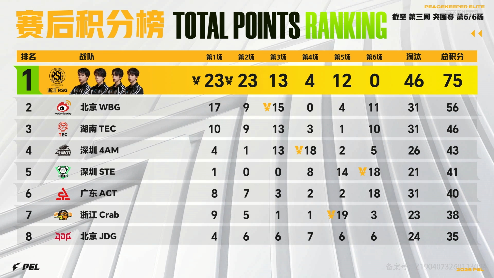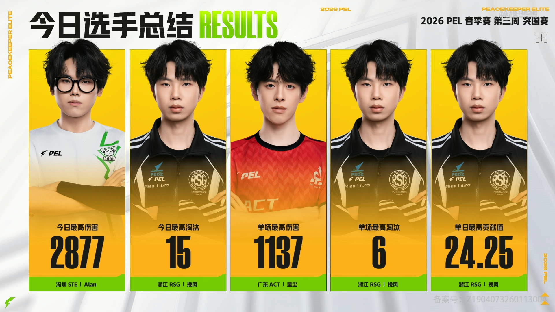 突围赛圆满落幕,RSG以积分第一晋级周决赛,赛后五连分身名场面直接霸屏全场 PEL2026PEL春季赛