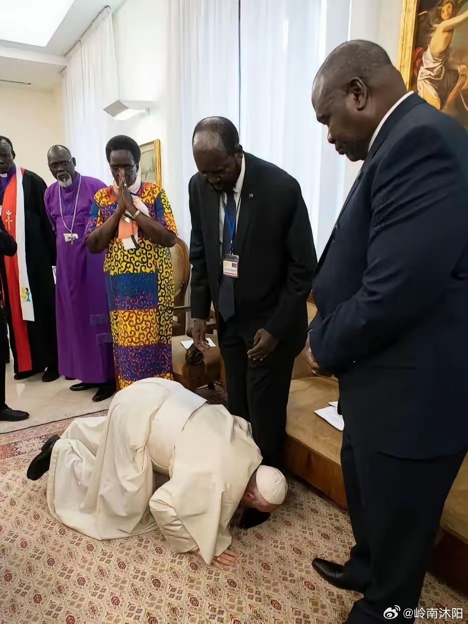 教皇显得如此渺小、谦卑而无力。他曾双膝跪下,亲吻两位争斗者的脚,苦苦恳求他们停止杀戮,不要再让彼此的人民流血牺牲。真正的牧者,是愿意为羊群献出生命的人。