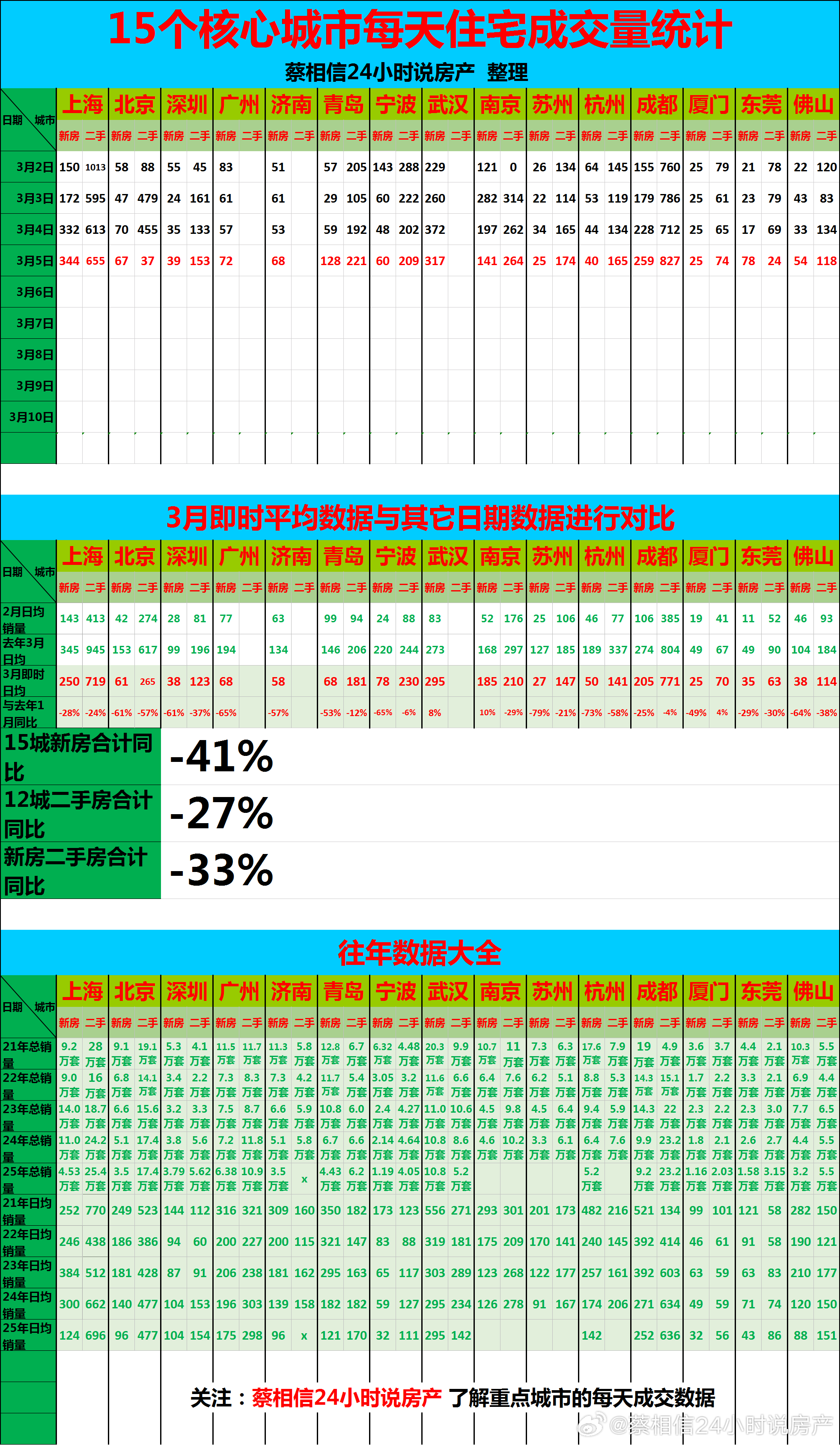 今日点评:3月前5天,新房同比下降41%,二手房同比下降27%,房地产房价