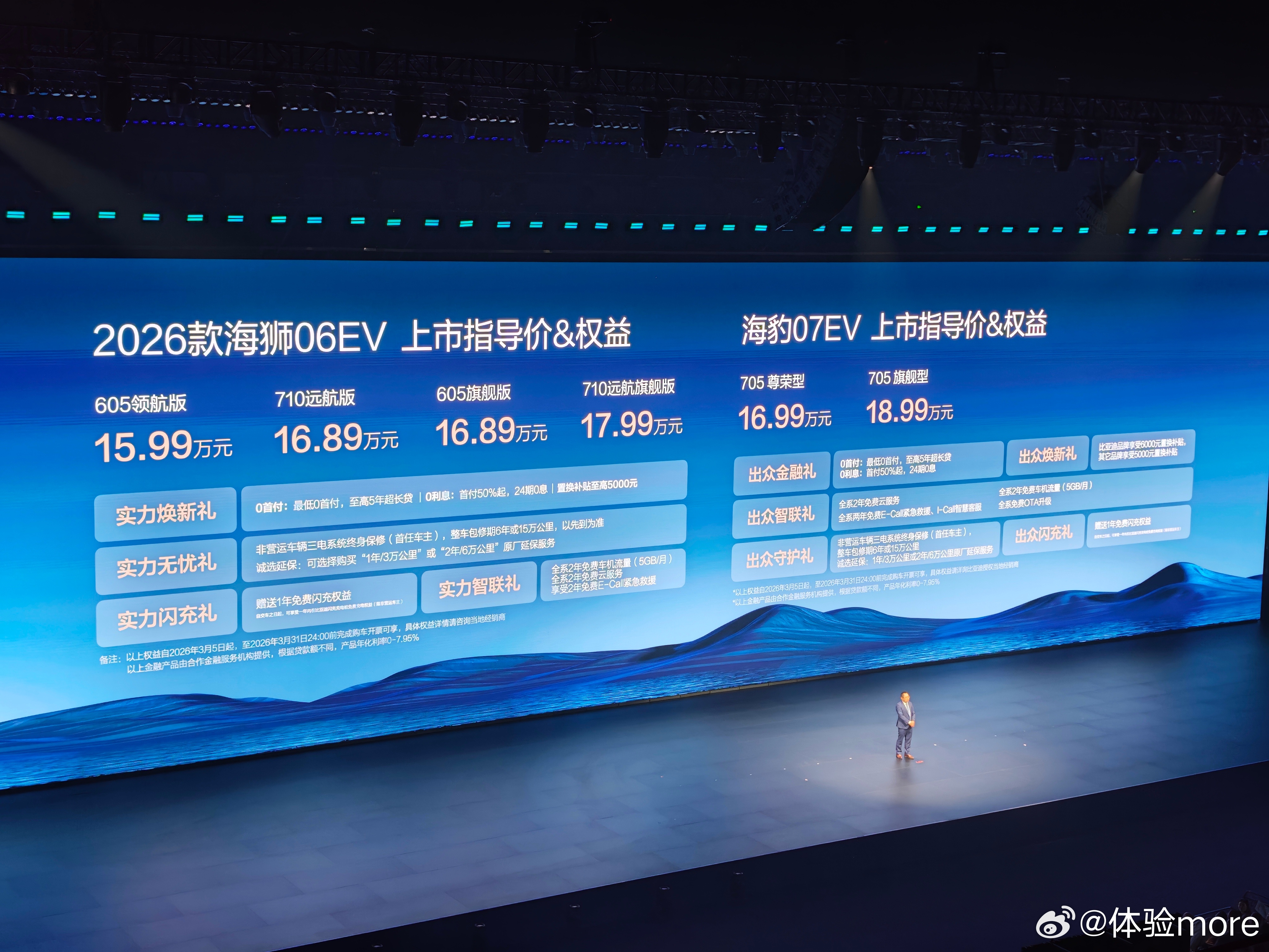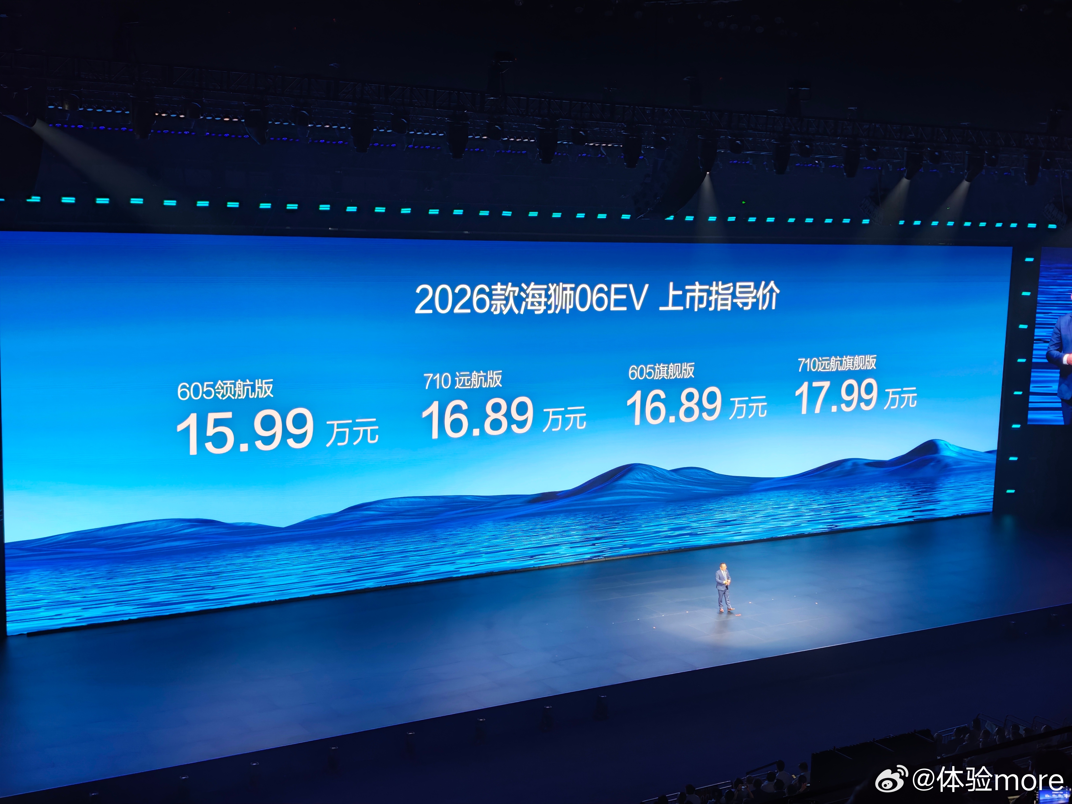 2026款海狮06 EV:605领航版,15.99万710远航版,16.89万605旗舰版,16.89万710远航旗舰版,17.99万