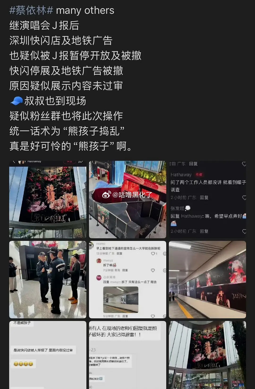 没人在意吗?蔡依林演唱会所有线下活动被叫停,线下快闪店被封,所有物料被撤,地铁广告被撤,商场活动被撤