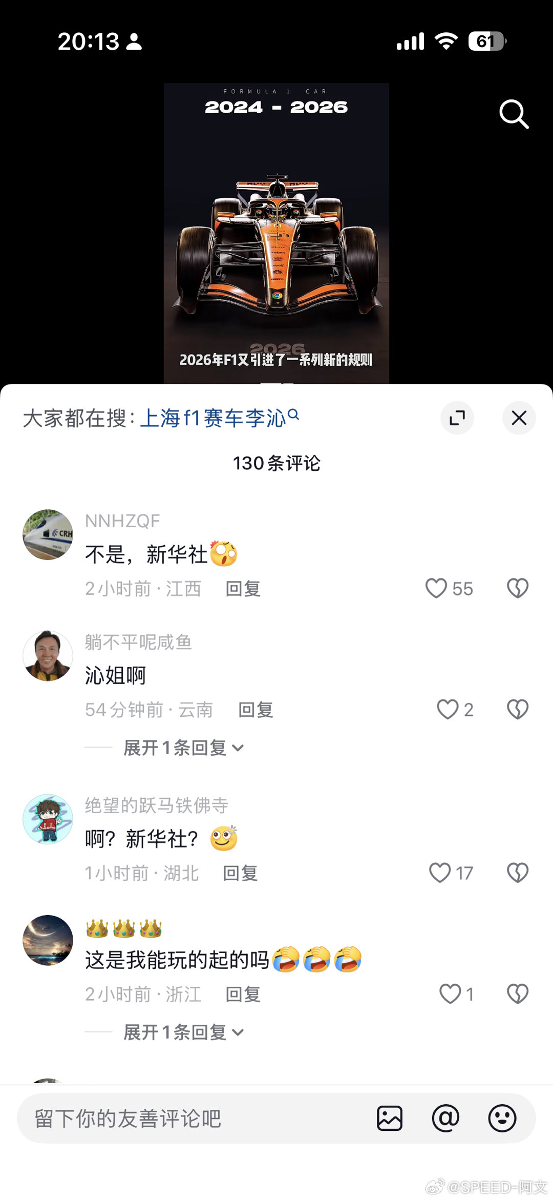 新赛季来临之际新华社结合前F1专业工程师做了一个科普视频新华社下场宣传对于“汽车文化荒漠”来说非常难得!可以看出汽车工业在国内会有光明的未来。汽场全开