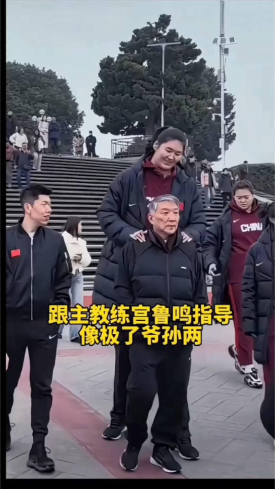 跟主教练宫鲁鸣指导像极了爷孙两。 新一代中国女篮集体来到长沙橘子洲游玩,2米27的小巨人张子宇简直是鹤立鸡群。王思雨姐姐在她身边变成了小手办,比中国男篮名宿王治郅还高出来一个头。