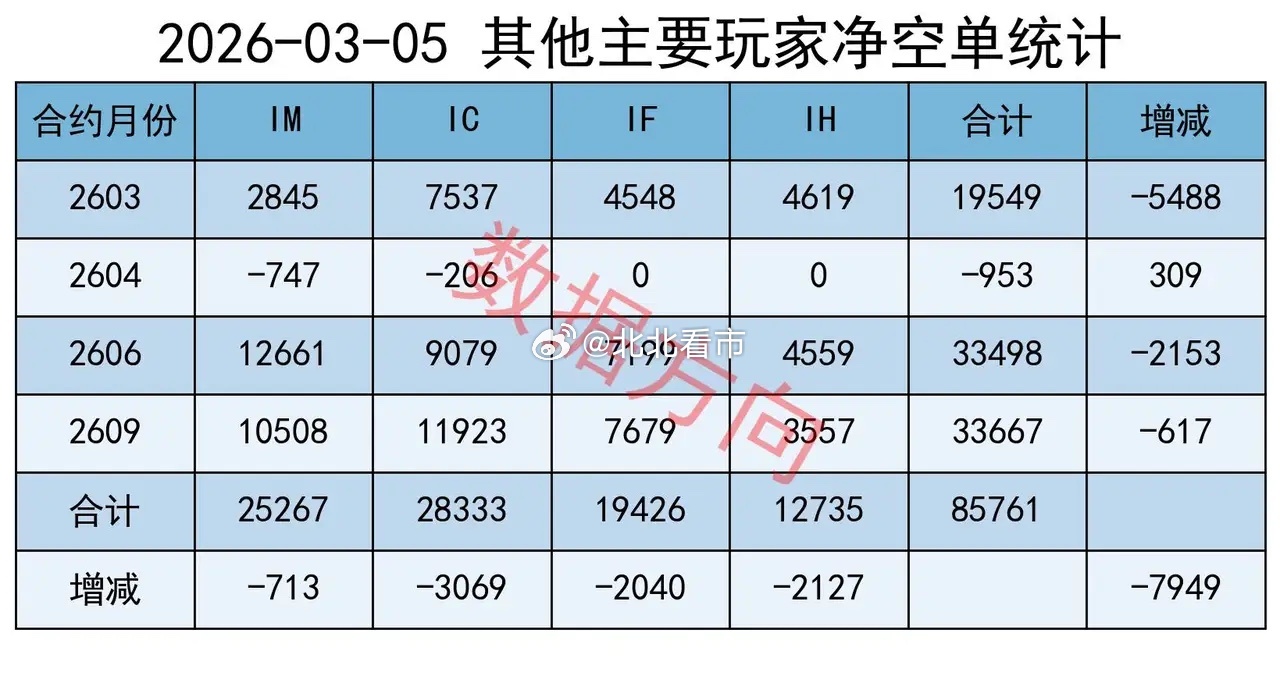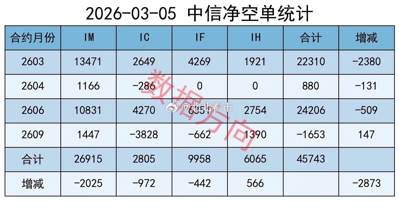 四大品种全部减空,分别对IH、IF减空2127手、2040手,分别对IC、IM减空3069手、713手;