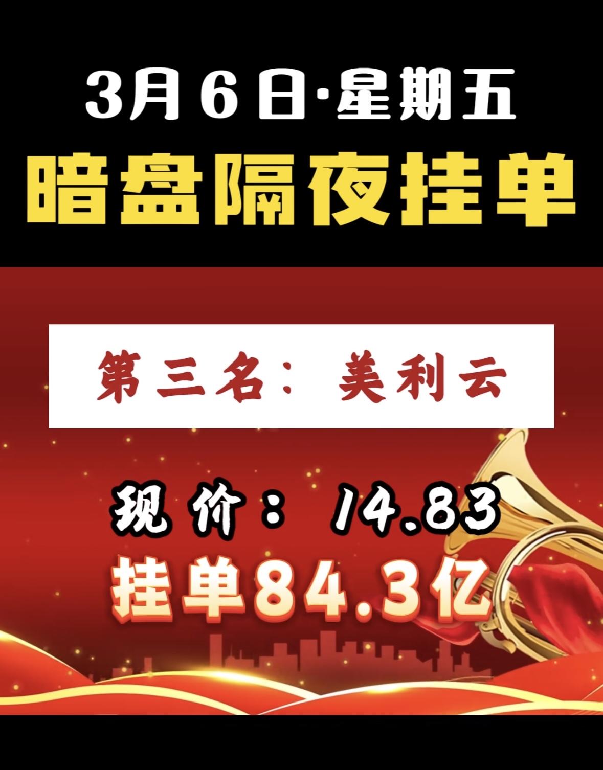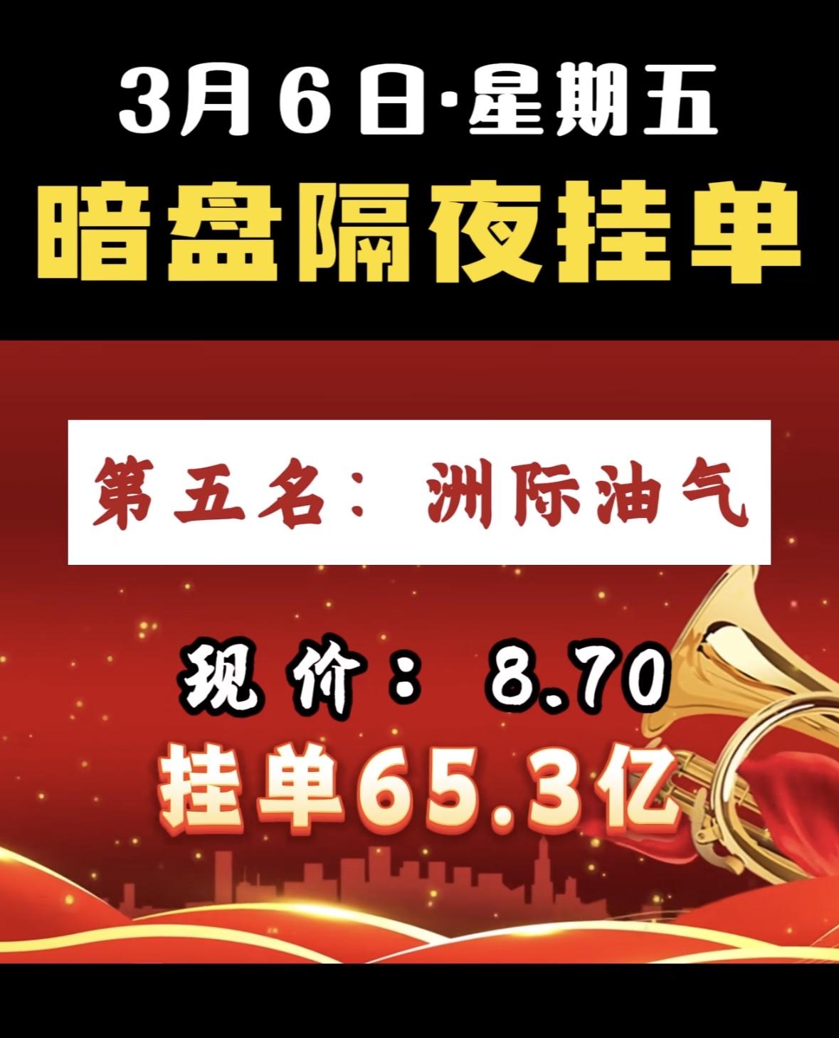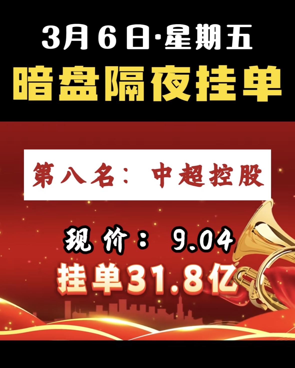 3月6日暗盘隔夜挂单前8名个股梳理,中超控股暗盘隔夜挂单,现价9.04,挂单31.8亿! "岩山科技登顶暗盘榜首,现价亮眼,百亿挂单显强势!"