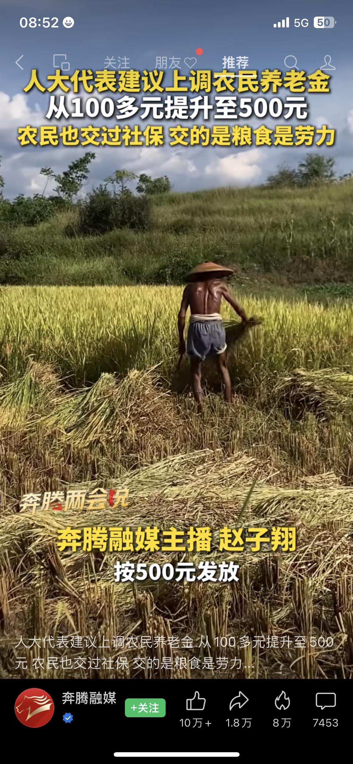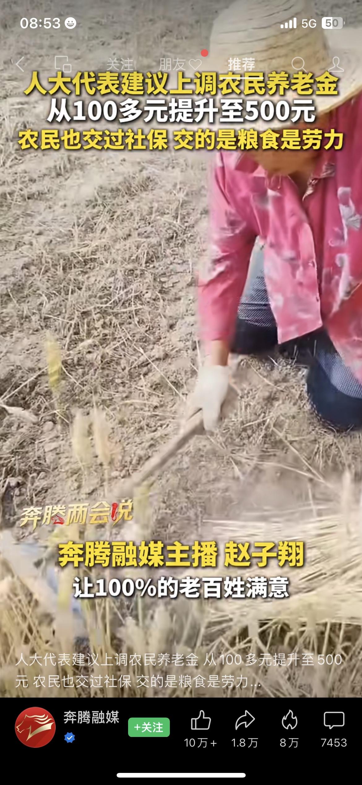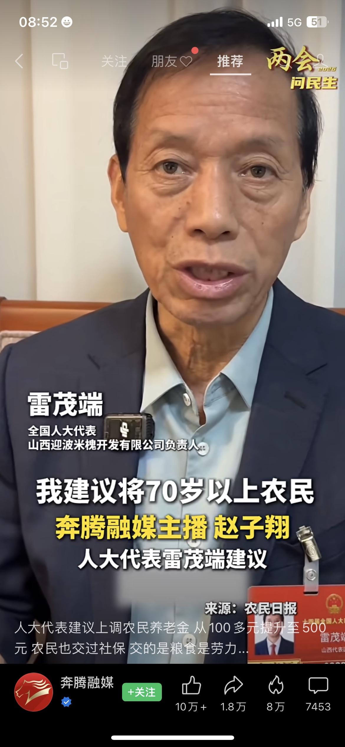 2026全国两会上,人大代表雷茂端带来一项暖心建议:将70岁以上农民的基础养老金提高到每月500元。 目前不少农村老人每月仅能领到百元左右,很难覆盖日常开销和医药费用。 老一辈农民曾交公粮、搞建设,为国家发展作出实实在在的贡献,如今养老问题值得重点关注。 建议分三年逐步提升,以中央财政为主、地方配套,一年新增支出约2300亿元,占比不高、可行性较强,既回应历史贡献,也筑牢农村养老底线。 你支持给70岁以上农民涨养老金吗?养老金2026