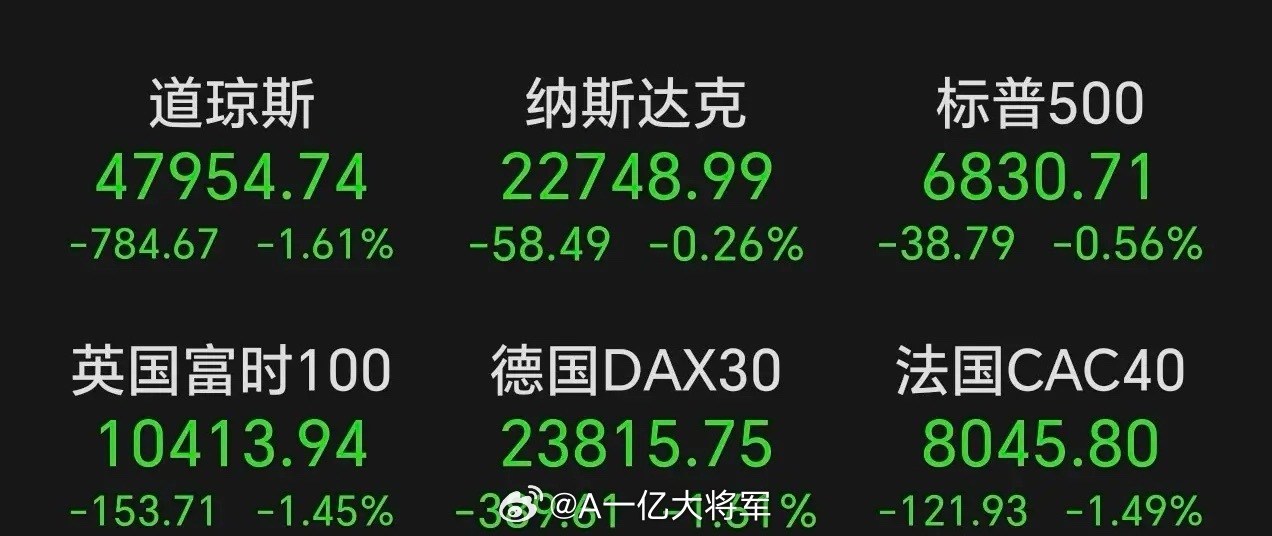 美伊冲突继续发酵,欧洲三大股指集体下跌,跌幅超1%。周四夜盘,美道指纳指标普集体