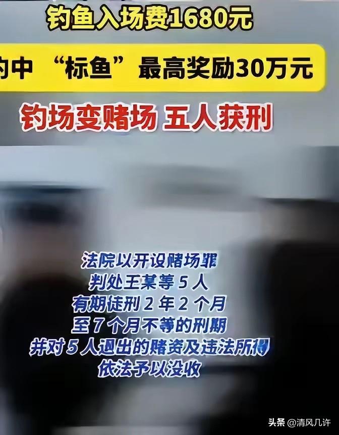 “胆子不是一般的大!”江苏镇江,一男子和好友承包20亩鱼塘,塞进5000余条青鱼,其中700余条带标记的“标鱼”,钓到一等奖直接奖30万,入场费1680元,限时5小时,1个月,这两人净赚60余万! 没人能想到,这场看似火爆的“高端垂钓竞技”,从一开始就不是为了让钓友享受渔乐,而是王某和束某精心策划的赌博骗局。 两人原本做着正当的钓场生意,可看着同行靠“标鱼”模式赚得盆满钵满,心里的贪念再也压不住。2024年初,他们一拍即合,各自出资50%,凑了近百万元,一头扎进丹阳市丹北镇的这片鱼塘。 他们购置5000余条青鱼,其中4000多条是普通鱼,700多条则被绑上红、黄、紫、绿、白五种颜色的微型标签——这些标签极小,藏在鱼鳍深处,肉眼几乎难以察觉,却对应着从500元到30万元不等的奖金,其中两条红标“一等奖”,每条价值30万元,黄标“二等奖”每条价值10万元。 为了让骗局更逼真,他们还制定了看似专业的规则:限定渔具长度、要求鱼钩正口、抽签定钓位、统一使用指定饵料,可这些规则的本质,不过是为了掩盖“标鱼”难以被发现的事实,让能否钓得标鱼几乎完全取决于随机因素,和钓鱼技术几乎没有关系。 钓场开业后,王某和束某立刻通过贾某、蒋某等代理,在本地及周边钓友微信群里大肆宣传,“钓中30万标鱼,一夜暴富不是梦”的口号像病毒一样传播开来。 1680元的入场费看似高昂,可在30万的巨额奖励面前,不少人失去了理智。钓友小徐就是其中之一,他在微信群里看到宣传时,心里清楚这本质上就是“投小钱求大钱”的赌博,可高额回报的诱惑实在太大。 他反复翻看群里的截图,看到有人晒出中二等奖10万元的转账记录,终于按捺不住,联系蒋某转账1680元报名。第二天一早,他赶到钓场,在小卖部买了指定鱼饵,通过摇号机摇到钓位,从清晨钓到中午,5小时里耗尽体力,只钓上两条不带标的普通鱼。 工作人员确认后将鱼放回鱼塘,给他兑了400元回鱼卡,算下来,他这一趟净亏1280元。像小徐这样的人不在少数,钓场设置的70余个钓位每次都座无虚席,有人甚至专程从外地赶来,就为了搏一把运气。 王某和束某的算盘打得精,他们清楚“标鱼”中奖概率极低,大部分钓友的入场费都会变成自己的利润。为了维持热度,他们偶尔会安排“托”钓中高价值标鱼,当场兑现奖金,再让这些“幸运儿”在群里晒截图、拍视频,吸引更多人入局。 短短一个月,他们就卖出373张入场券,非法获利高达62万多元。可纸终究包不住火,2024年4月中旬,王某听闻外地类似钓场被查的消息,心里发慌,立刻关闭钓场,将鱼塘里的青鱼全部售出,试图销毁证据。可他没想到,公安机关早已盯上了这个可疑的钓场。 2024年5月,警方在日常工作中发现王某等人的可疑线索,随即展开调查。 他们调取了王某等人的微信转账记录、聊天记录,走访了参与垂钓的钓友,收集了大量证人证言,很快就摸清了这个“钓场”的真实面目——它根本不是什么休闲场所,而是一个披着合法外衣的赌博窝点。 警方迅速行动,将王某、束某等主要嫌疑人抓获,其余参与运营的贾某、另一王某、蒋某等人也相继归案。面对确凿的证据,王某等人终于低下了头,如实供述了自己的犯罪事实,自愿认罪认罚。 丹阳法院于2025年1月2日立案受理此案。审理过程中,法院明确指出,王某等人的行为与普通休闲垂钓有着本质区别。他们以营利为目的,利用钓客“以小博大”的投机心理,通过设置高额入场费和标鱼奖励规则,组织众多不特定人员参与赌博,完全符合开设赌场罪的构成要件。 在共同犯罪中,王某、束某起主要作用,系主犯;其余被告人起次要作用,系从犯。法院根据5名被告人的犯罪事实、性质、情节以及对社会的危害程度,依法作出判决:以开设赌场罪判处王某等5人有期徒刑2年2个月至7个月不等的刑期,并对5人退出的赌资及违法所得依法予以没收。 这起案件像一记响亮的警钟,敲醒了那些试图钻法律空子的人,也提醒着每一个心存侥幸的普通人。在这个时代,总有人幻想着用最小的投入换取最大的回报,可天上掉馅饼的事从来都不存在,那些看似诱人的高额奖励,背后往往藏着深不见底的陷阱。 钓鱼本是一项修身养性的休闲活动,却被别有用心的人扭曲成了赌博的工具,不仅破坏了行业风气,更触碰了法律的红线。法律不会因为披上“合法外衣”就对非法行为视而不见,任何试图挑战法律底线的人,最终都将为自己的行为付出沉重的代价。 各位读者你们怎么看?欢迎在评论区讨论。