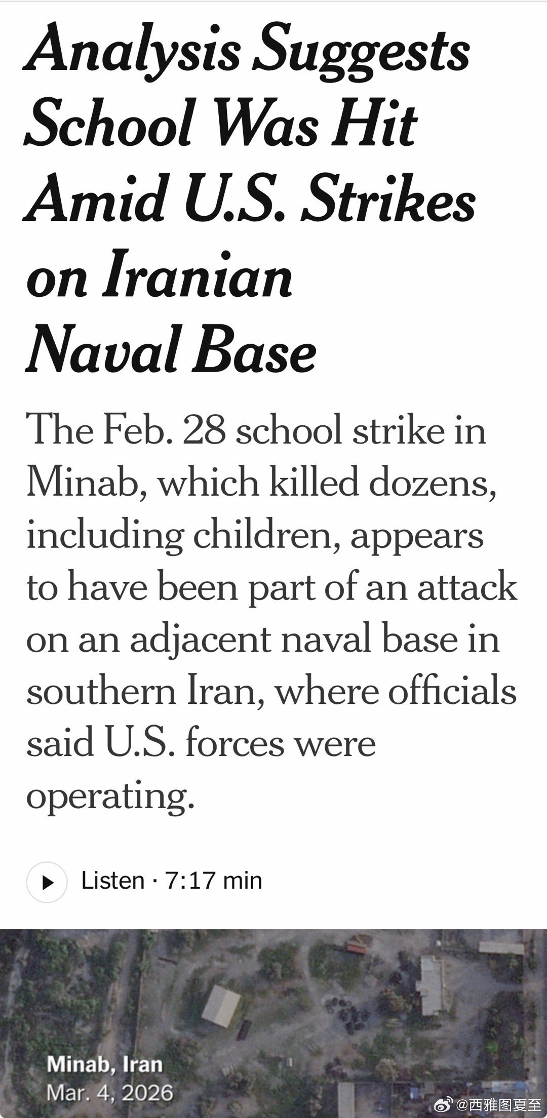 美国媒体根据已知信息推断:2月28,伊朗小学被炸,是美军的导弹~当时正在袭击紧邻的伊朗海军基地,误将学校当作基地的一部分(曾经是基地的一部分,十年前隔离开来)