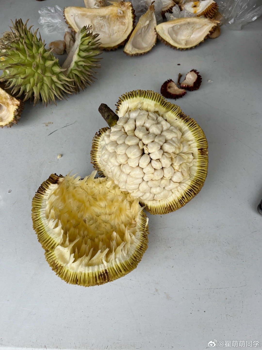 吃到两个小小的【菠萝蜜】,一个黄色的【异叶菠萝蜜】,一个白色的【香菠萝蜜】,都还挺好吃。