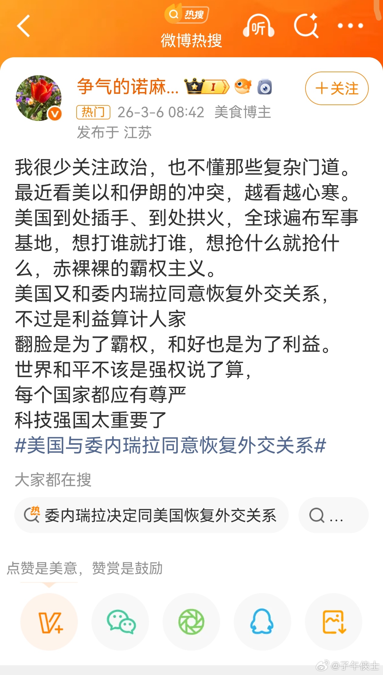 委内瑞拉决定同美国恢复外交关系这是话题评论区里的正常人。