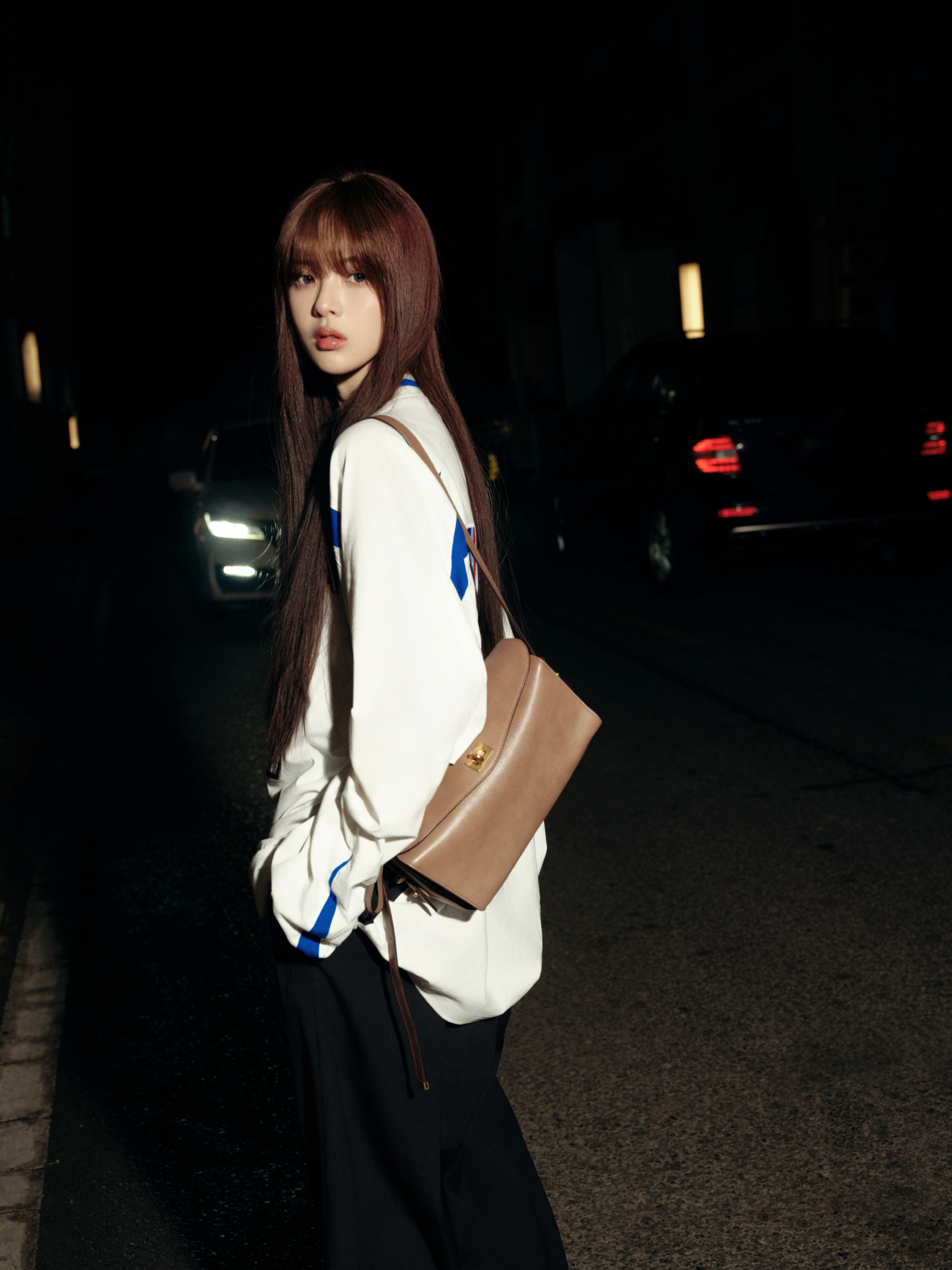 杨超越|巴黎时装周杨超越身穿巴黎世家与NBA联名款白色长袖球衣。出发整体造型搭