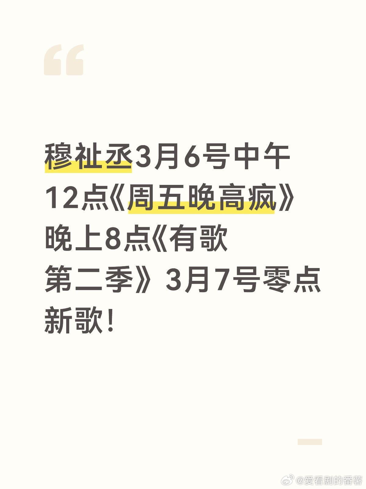 穆祉丞综艺新歌!超级期待!穆祉丞3月6号中午12点《周五晚高疯》晚上8点《有歌第二季》3月7号零点新歌!