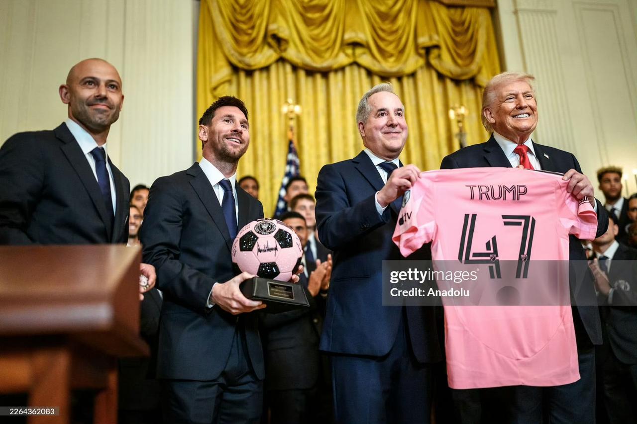 这是美国体育的传统, 冠军球队可受邀造访白宫! 梅西以迈阿密国际队长的身份,以获得2025美职联总冠军的荣誉,按照美国体育传统,受邀出席白宫嘉奖活动, 庆祝球队在2025赛季夺得美职联总冠军。 对于活动上梅西的表现,网友:幸好梅西不说英语,不用应酬他![偷笑]
