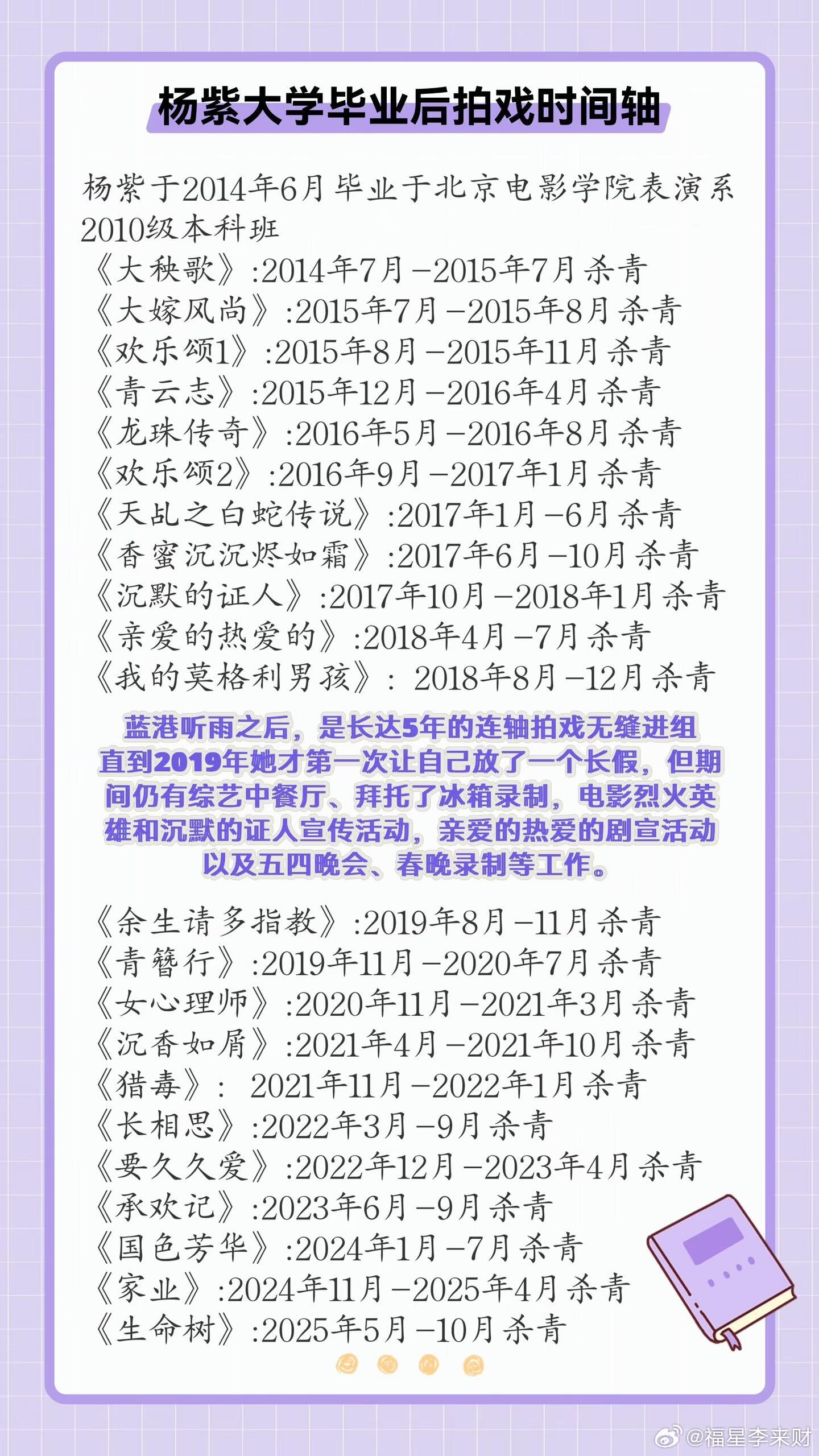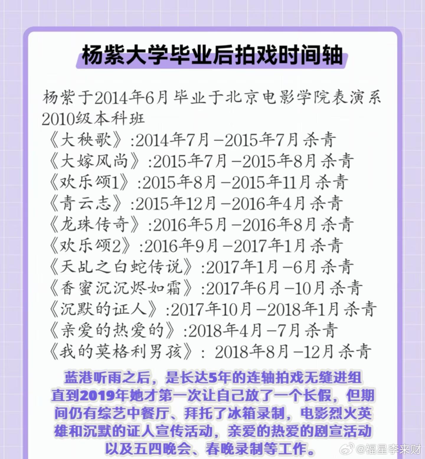 考古杨紫工作时间线,没让任何一个机会溜走一直工作,从未停歇。这么多年,能把握的机
