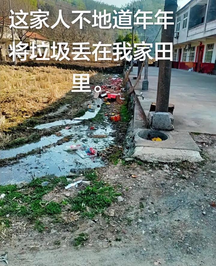 垃圾丢别人田里,确实不地道,自家院子倒是干净了,不考虑别人第二年能不能种地? 看样子不止是垃圾,连脏水都一起倒田里了,估计种什么都长不了。
