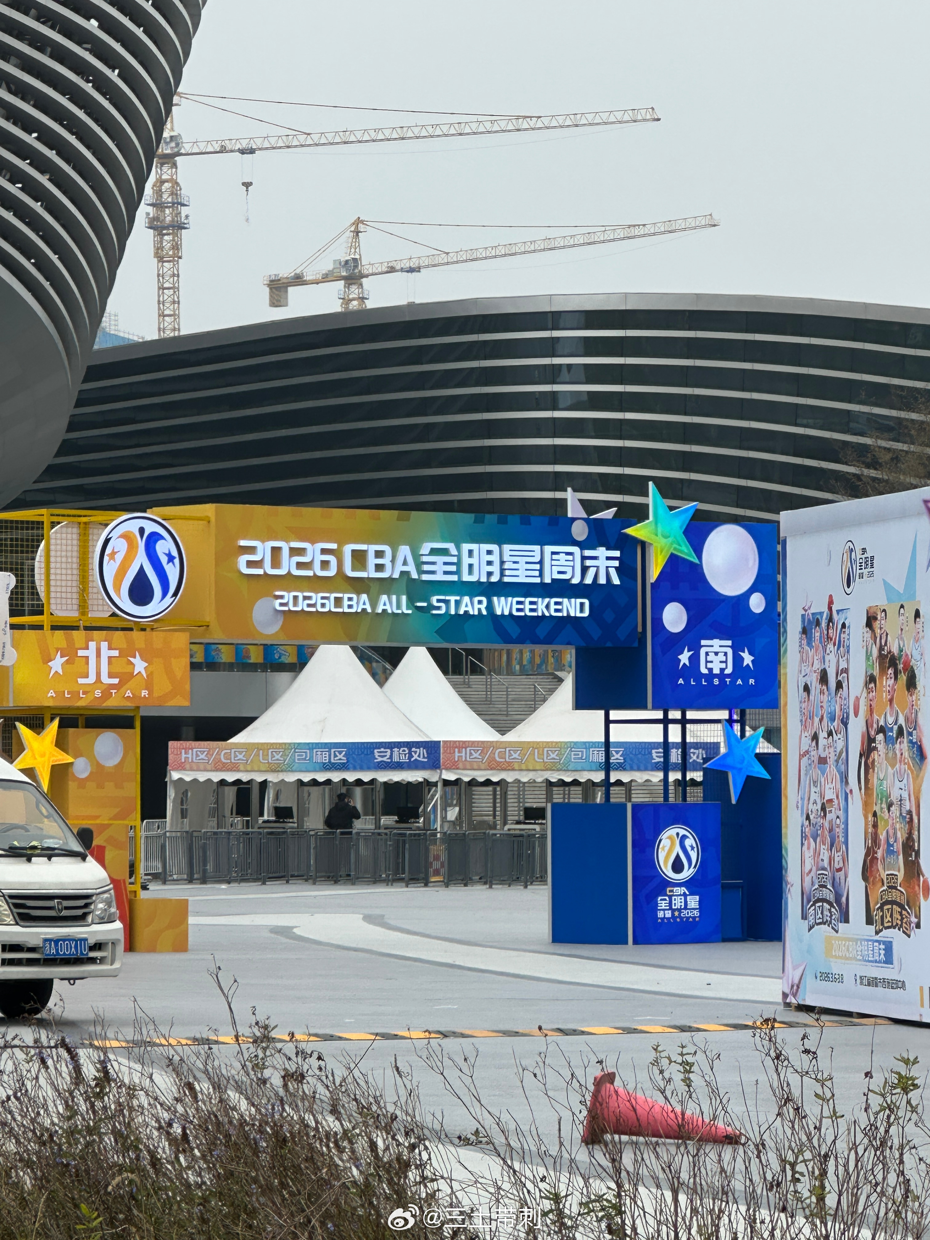 这会的场馆外面,现在去球员酒店了 诸暨·西施篮球中心