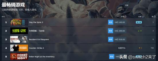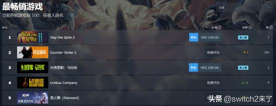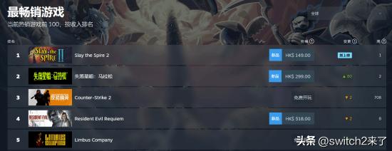 《杀戮尖塔2》是经典Rogue-like卡牌构筑游戏《杀戮尖塔》的正统续作,由Mega Crit负责制作和发行,游戏现已以抢先体验的模式正式上架Steam,国区售价88元,支持简体中文。 虽然本作目前只是抢先体验版本,正式的完全体尚未发售,但其火爆程度超乎想象。截至发稿,游戏登顶Steam官方的全球畅销榜,超越了索尼的搜打撤大作《失落星船:马拉松》和卡普空的《生化危机9:安魂曲》。 除此之外,游戏在中国大陆、美国、日本等多个国家或地区的Steam畅销排行榜上同样稳稳斩获了第一的位置。
