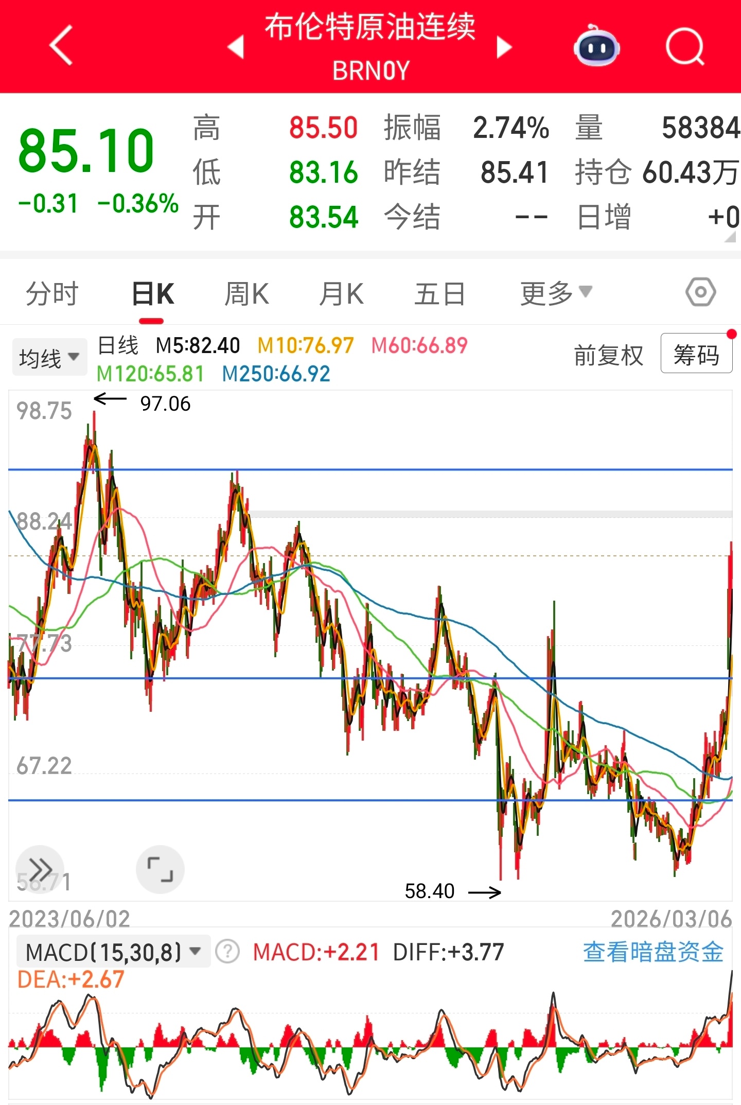 布伦特原油价格站上85美元,成为继白银之后的第二个商品指数、以及2026年的第N个涨幅突破40%的指数,也是目前2026年涨幅第一的指数。