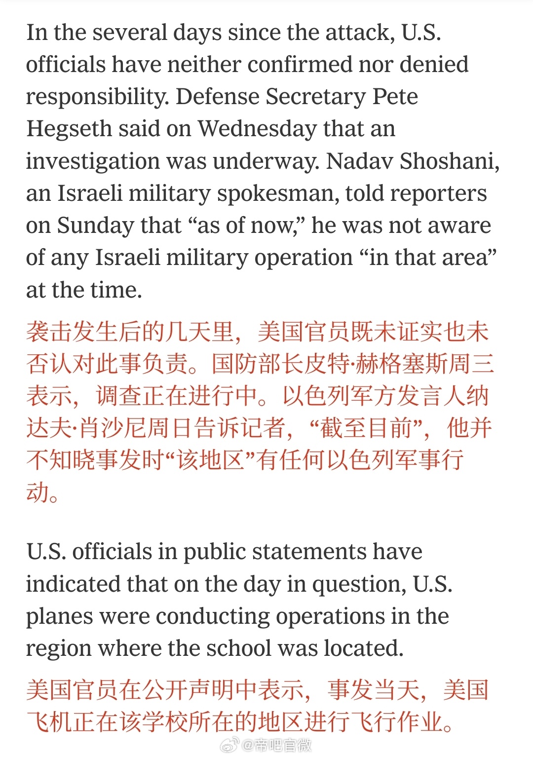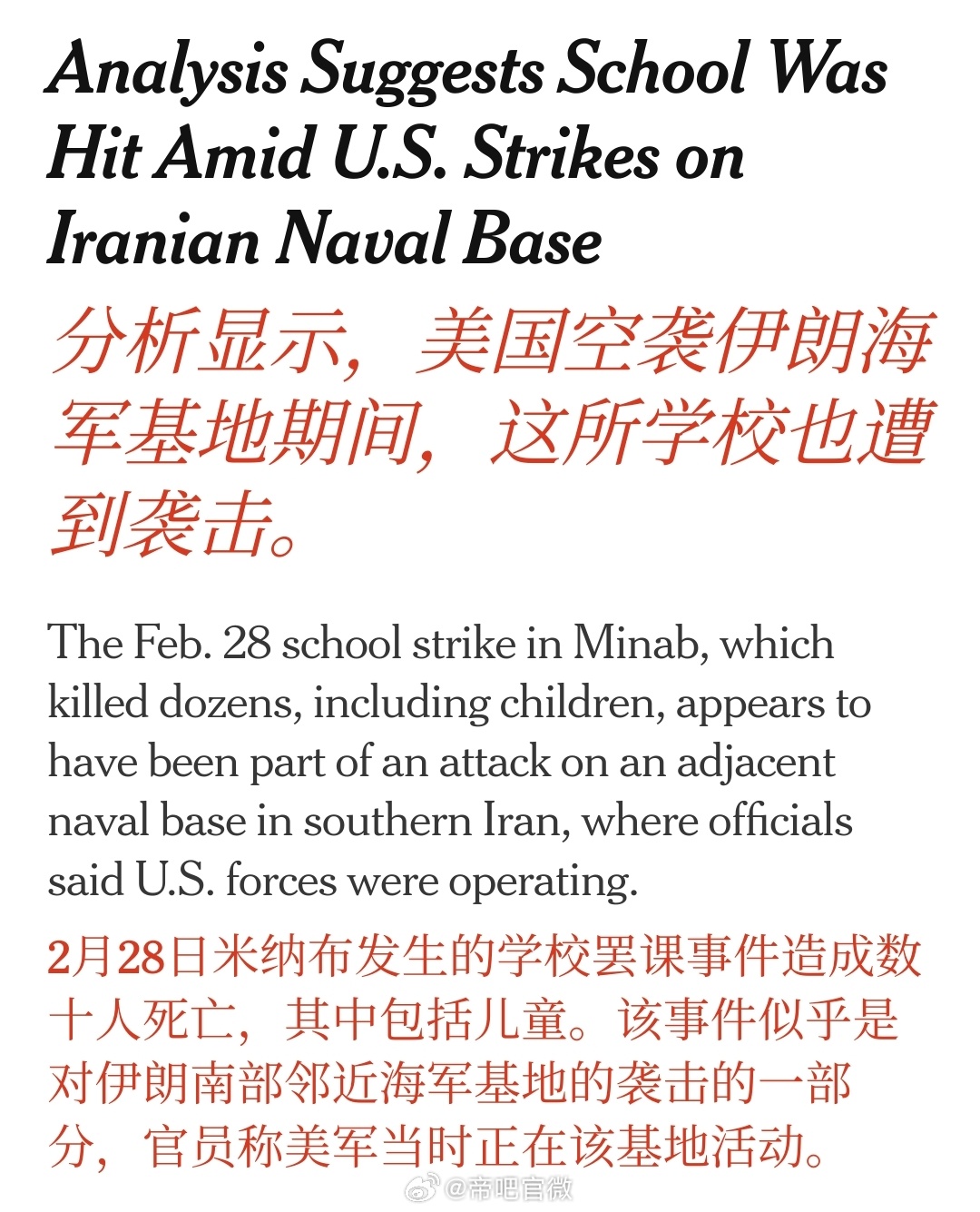 有点瞒不住了,纽时:伊朗的女子小学“好像”是美国打的,因为当时美军正在周边空袭伊朗军事目标。伊朗称击中美国林肯号航母海外新鲜事